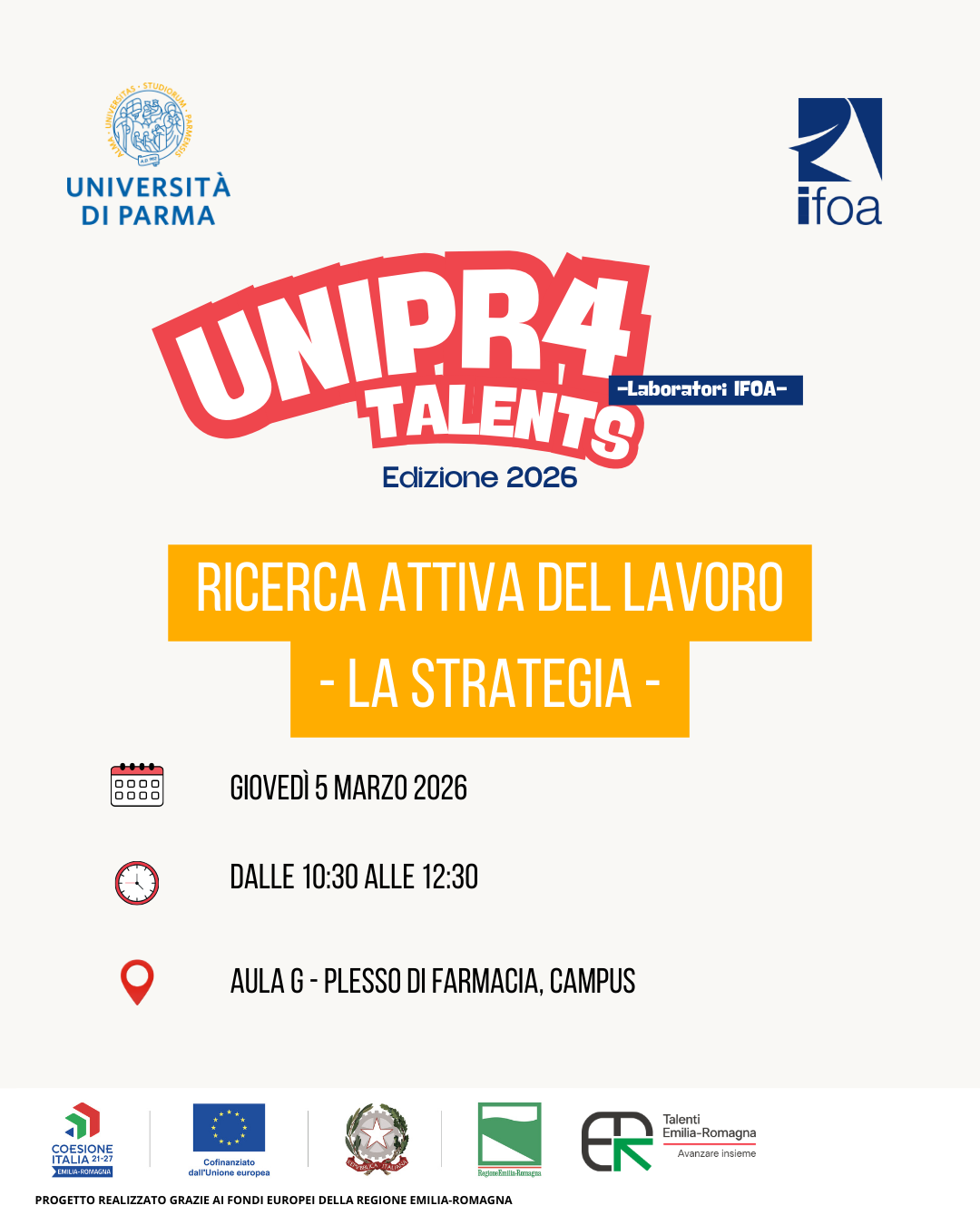 Ricerca attiva del lavoro | La Strategia - Link di iscrizione |Quando: Giovedì 5 marzo – 10,30-12,30 | Dove: Plesso di Farmacia Aule G