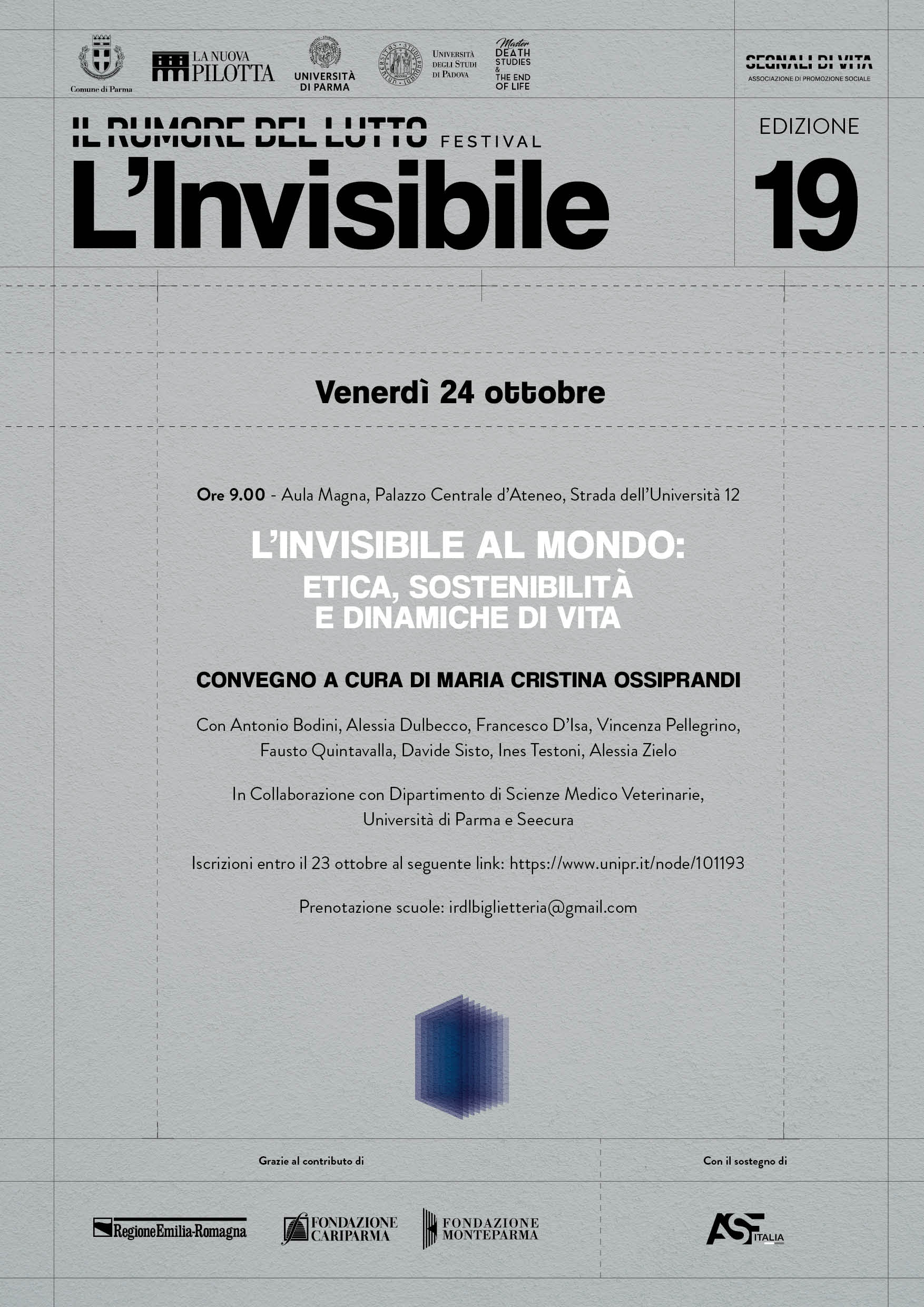 Relatori e relatrici affronteranno la tematica dell’Invisibile attraverso prospettive differenti: verranno analizzati gli aspetti etici, filosofici, sociali ed ecologici, mettendo in luce l’intrinseca trasversalità culturale dell’argomento.