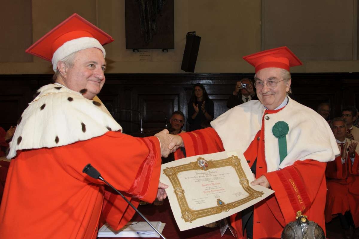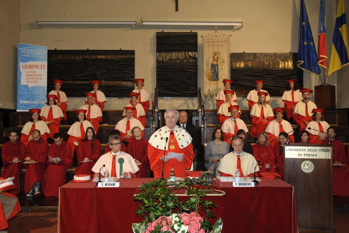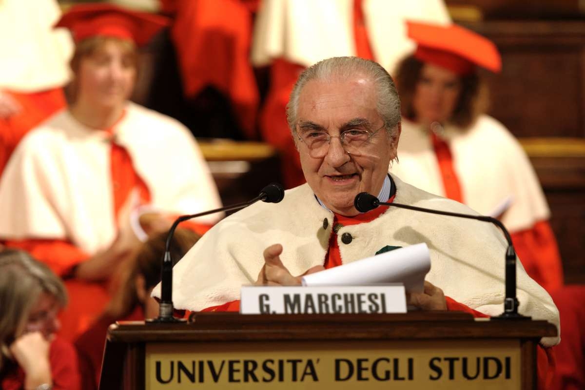 Parma, 10 ottobre 2012 – Si è tenuta oggi, presso l’Aula Magna del Palazzo Centrale dell’Ateneo, la cerimonia di consegna della Laurea magistrale Honoris Causa in Scienze gastronomiche da parte dell’Università degli Studi di Parma al Cav. Gualtiero Marchesi, che ha presentato la Lectio doctoralis dal titolo “La mia via”. In un’Aula Magna gremita in ogni ordine di posti, alla presenza tra gli altri di numerose autorità cittadine, dei familiari e amici del Cav. Marchesi, dei rappresentanti istituzionali di ALMA - La Scuola Internazionale di Cucina Italiana - e degli esponenti di alcune delle più autorevoli scuole di cucina del mondo, si è svolta la solenne cerimonia, aperta dal corteo accademico che ha visto sfilare in toga le massime autorità dell’Ateneo. «Il conferimento di una Laurea Honoris Causa a personalità che si sono particolarmente distinte in ambito professionale o scientifico – afferma il Rettore Gino Ferretti – è per un Ateneo un evento eccezionale e di grande valore, anche perché il laureato ad honorem entra a tutti gli effetti a far parte della comunità accademica. In particolare gli straordinari traguardi professionali raggiunti da Gualtiero Marchesi nonché la sua elevata capacità imprenditoriale in ambito gastronomico vengono oggi riconosciuti dal nostro Ateneo, che da anni ha attivato percorsi di studio di grande successo nell’ambito delle scienze alimentari e gastronomiche. E’ superfluo infatti sottolineare come il territorio parmense sia caratterizzato da un tessuto imprenditoriale di piccole e grandi imprese, che hanno fatto dell’agro-alimentare e dell’alimentazione il proprio terreno di eccellenza. Quindi – conclude il Rettore Ferretti – nessun contesto poteva essere più adatto del nostro per riconoscere lo straordinario percorso professionale di Gualtiero Marchesi». «Da giovane correvo in bicicletta e vincevo spesso - commenta Gualtiero Marchesi – oggi, invece, arrivo anche senza correre. Battute a parte, sento tutta la soddisfazione e la responsabilità di una laurea honoris causa, dedicata alla persona, ma soprattutto al tempo ben speso nel corso di un’intera vita. Grazie, quindi. Grazie di cuore. Questa laurea è, per me, un modo di verificare la forza di certe idee. In particolar modo, del Codice Marchesi, grazie al quale ho fissato le mie ricette come si scrive la musica, attraverso un canone. Un codice è il contrario di un limite, perché mette chiunque lo desideri nelle condizioni migliori per eseguire quella ricetta, aggiungendo la propria storia, la propria cultura, la propria personalità. Il massimo che un cuoco possa immaginare e desiderare». Nel corso della cerimonia Erasmo Neviani, Preside della ex Facoltà di Agraria, ha letto la motivazione con cui il Consiglio di Facoltà di Agraria nel 2010 aveva deliberato il conferimento della Laurea Honoris Causa a Gualtiero Marchesi, mentre Furio Brighenti, Ordinario di Nutrizione umana, ha tenuto la Laudatio del candidato. «Esiste tra ALMA e Università di Parma – ha commentato Albino Ivardi Ganapini, Presidente onorario di ALMA - una solida alleanza che risale al 2001, quando l'Università entrò a far parte del Comitato Promotore della Scuola Internazionale di Cucina Italiana. Quattro anni fa poi fu sottoscritto tra Alma e Università un protocollo d'intesa tuttora vigente. La proposta della Laurea Honoris Causa a Gualtiero Marchesi è partita da ALMA e ha trovato subito nel Rettore Gino Ferretti una calda attenzione. Nel dossier di richiesta al Ministro dell'Istruzione, dell’Università e della Ricerca, a cui ALMA ha contribuito, veniva chiaramente illustrato e documentato il ruolo di Marchesi come maestro e come Rettore di ALMA. Credo che nella valutazione ministeriale questo fatto abbia avuto un ruolo decisivo, perché aggiungeva ai grandi meriti professionali di Marchesi nello sviluppo della cucina italiana moderna il connotato di formatore e di ispiratore della didattica nella Scuola affermatasi nel mondo come la più prestigiosa tra le istituzioni italiane del settore. Io personalmente e ALMA tutta siamo veramente orgogliosi per l'alto riconoscimento al proprio Rettore, che va ad arricchire tutta la cultura gastronomica del nostro Paese». CURRICULUM VITAE DI GUALTIERO MARCHESI Gualtiero Marchesi nasce a Milano nel 1930 nell’albergo “Mercato” dei genitori. Dopo importanti esperienze all’estero, ha inaugurato nel 1977 il suo ristorante a Milano. È stato il primo cuoco in Italia a ricevere le tre stelle Michelin (1985) e il primo al mondo a rifiutare il giudizio delle guide (2008). Nel 1990, a conferma del ruolo che riveste nell'ambito internazionale, viene fregiato dal Ministro della Cultura francese dell’onorificenza di "Chevalier dans l'ordre des Arts et des Lettres". Innumerevoli i riconoscimenti: “Commendatore e Cavaliere della Repubblica”, “Ambrogino d'Oro”, “Longobardo d’Oro”, “Grand Prix Mémoire et Gratitude”, “Premio Isimbardi”, “Medaglia d’Oro del Ministro del Turismo” per l’impegno profuso nella diffusione della cucina italiana nel mondo. Rettore di ALMA fin dalla fondazione, Gualtiero Marchesi ha contribuito significativamente all’affermazione dell’immagine e della reputazione della Scuola Internazionale di Cucina Italiana in tutto il mondo. Nel 2009 riceve a Madrid il “Grembiule d’oro” insieme ad altri dieci cuochi internazionali che hanno influenzato la cucina dell’ultimo decennio. Nel 2010 dà vita alla Fondazione Marchesi che persegue l’insegnamento del buono e del bello attraverso tutte le arti.