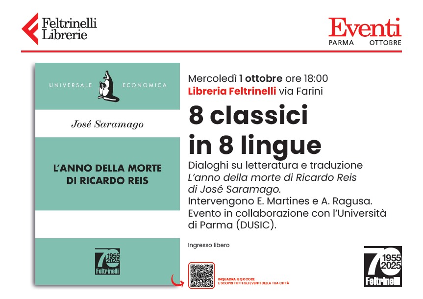 Fa parte di 8 classici in 8 lingue - Dialoghi tra letteratura e traduzione Dialoghi tra letteratura e traduzione Da Mercoledì, 1 Ottobre, 2025 - 18:00 A Lunedì, 1 Dicembre, 2025 - 18:00 Libreria Feltrinelli Ingresso libero fino esaurimento posti