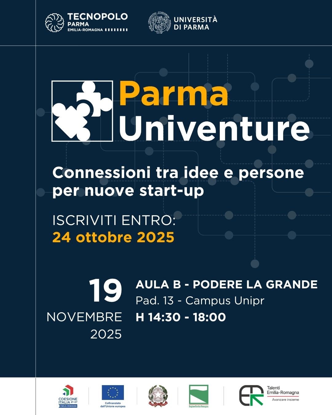 Parma Univenture è un evento organizzato dall’Università di Parma dedicato a studentesse e studenti, ricercatrici e ricercatori interessati all’imprenditorialità. Un’occasione per presentare idee, creare team multidisciplinari, ascoltare testimonianze e fare networking per trasformare le intuizioni in progetti concreti.