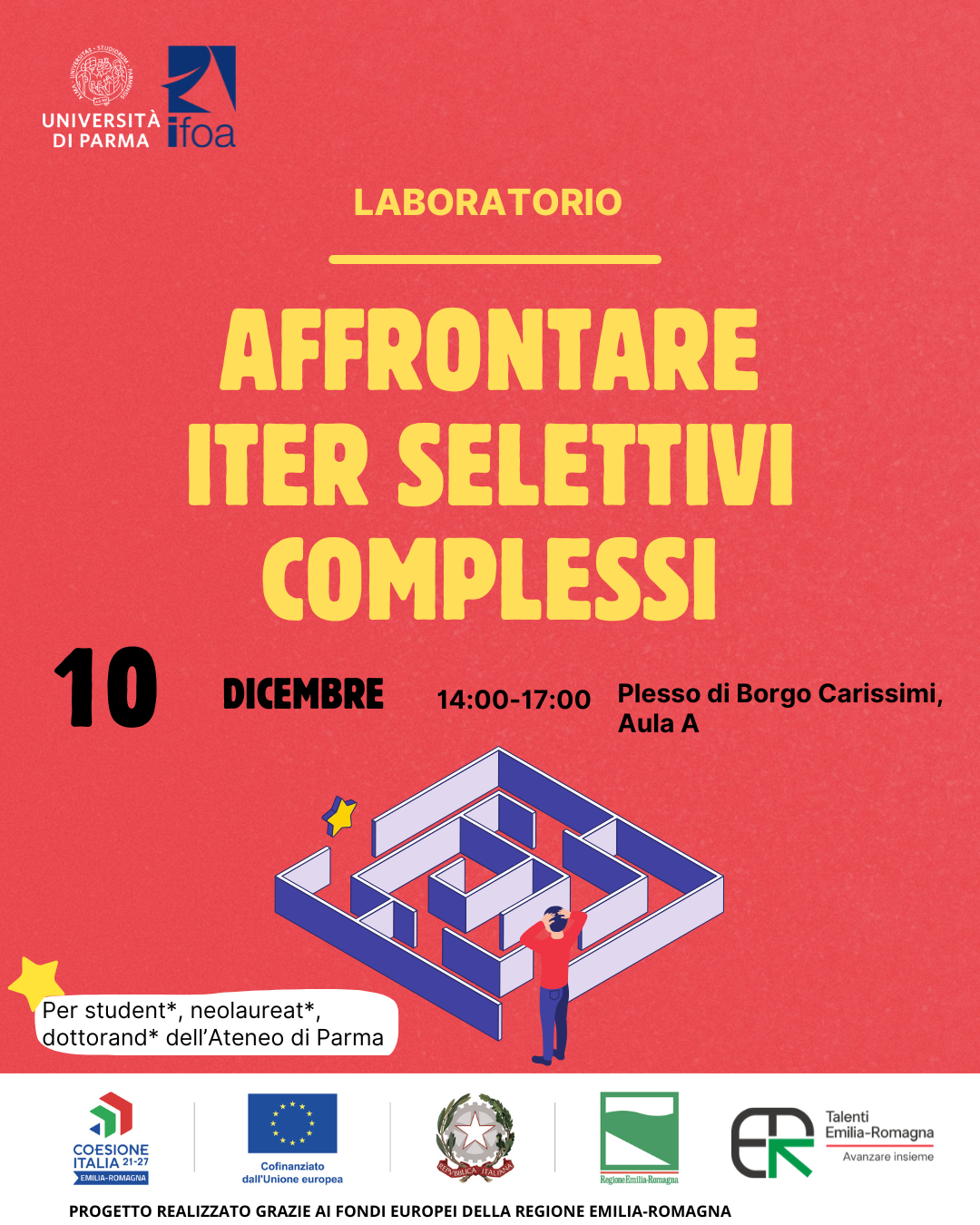 In collaborazione con IFOA, ente di formazione specializzato, è stato organizzato un ciclo di laboratori "Affrontare iter selettivi complessi", un'opportunità pratica e coinvolgente per acquisire strumenti e consapevolezza nell'affrontare con successo i processi di selezione.