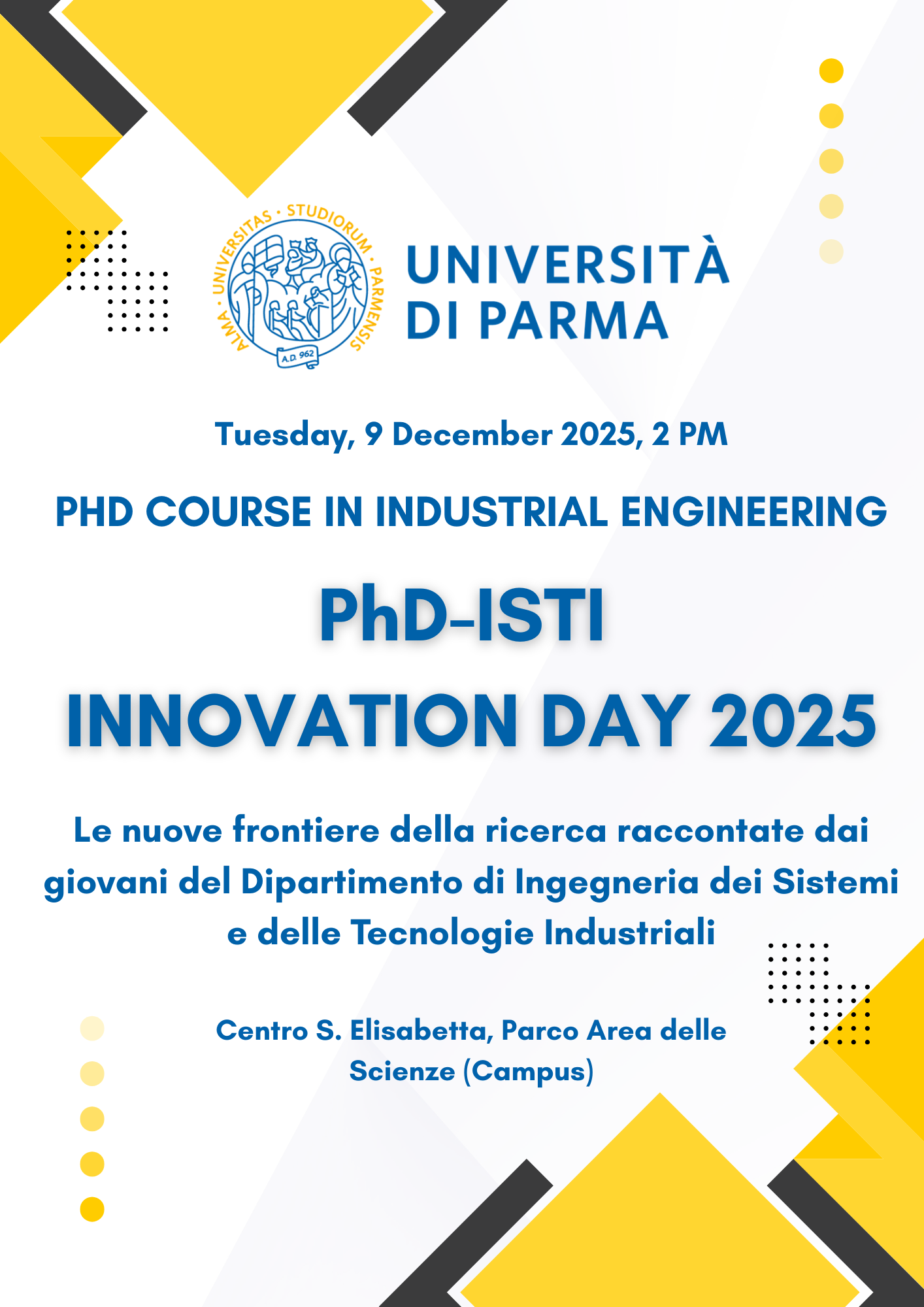 I dottorandi al terzo anno del Corso di Dottorato di Ricerca in Ingegneria Industriale sono invitati a partecipare al PhD-ISTI Innovation 2025, per presentare i propri lavori di ricerca con un intervento a carattere divulgativo. Come da tradizione, la giornata si concluderà con la premiazione della miglior presentazione, che riceverà simbolicamente lo Strolghino d’Oro.