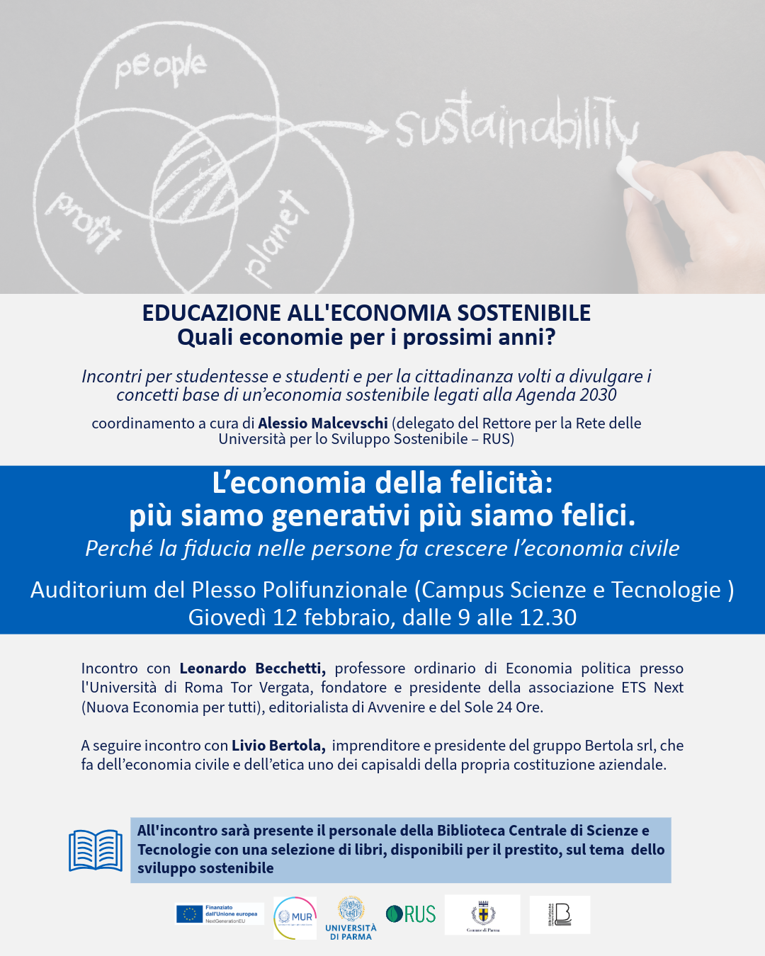 Incontro con Leonardo Becchetti, professore ordinario di Economia politica presso l'Università di Roma Tor Vergata, fondatore e presidente dell'associazione "ETS Next" (Nuova Economia per tutti), editorialista di Avvenire e del Sole 24 Ore.