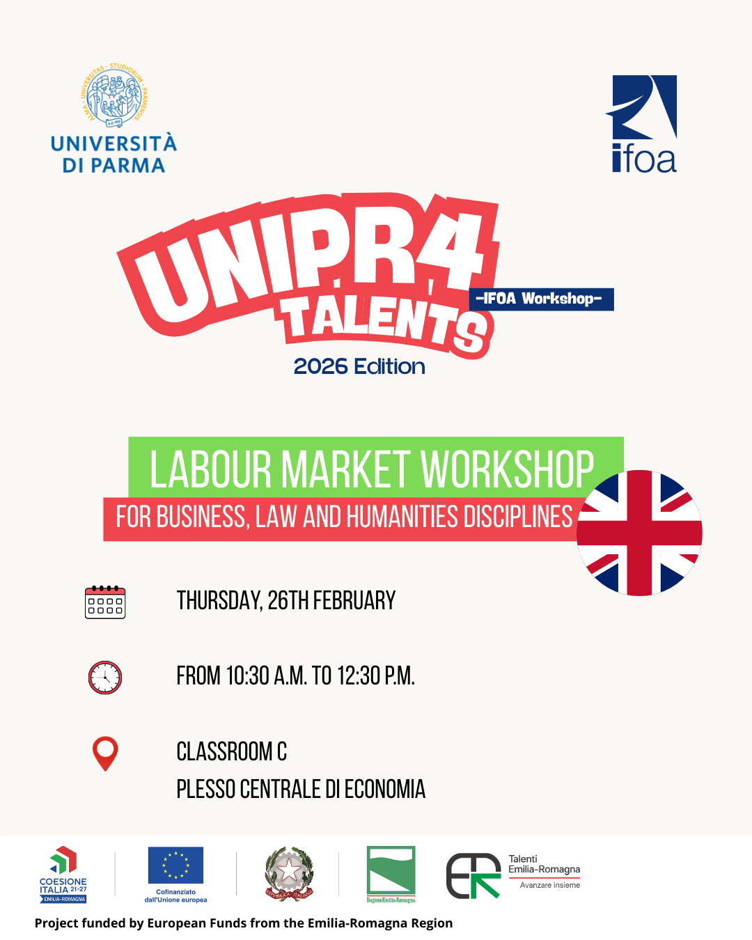 Organized by UNIPR4Talents – talentuosi si diventa in collaboration with IFOA, this English-language workshop is a practical and engaging opportunity to gain clarity, confidence, and tools to navigate the Italian labour market successfully.