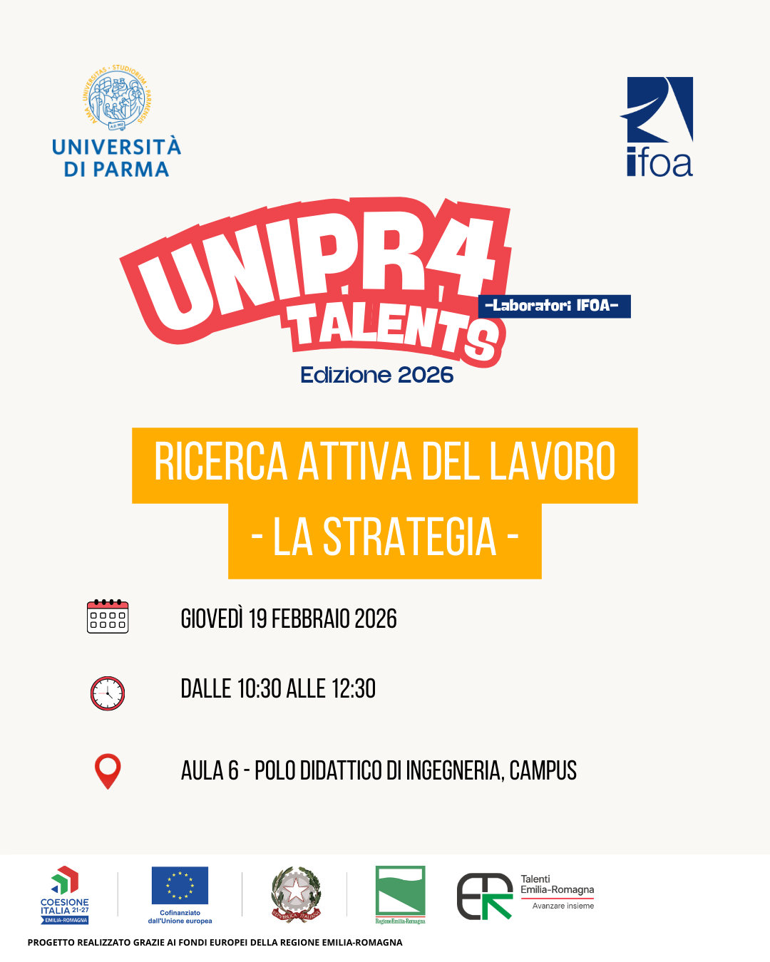 In collaborazione con IFOA, ente di formazione specializzato, è stato organizzato un ciclo di laboratori "Ricerca attiva del lavoro | La Strategia", un’opportunità interattiva pensata per guidare i partecipanti nella costruzione di una strategia efficace di ricerca del lavoro, trasformando il proprio progetto professionale in un piano d’azione concreto e mirato.