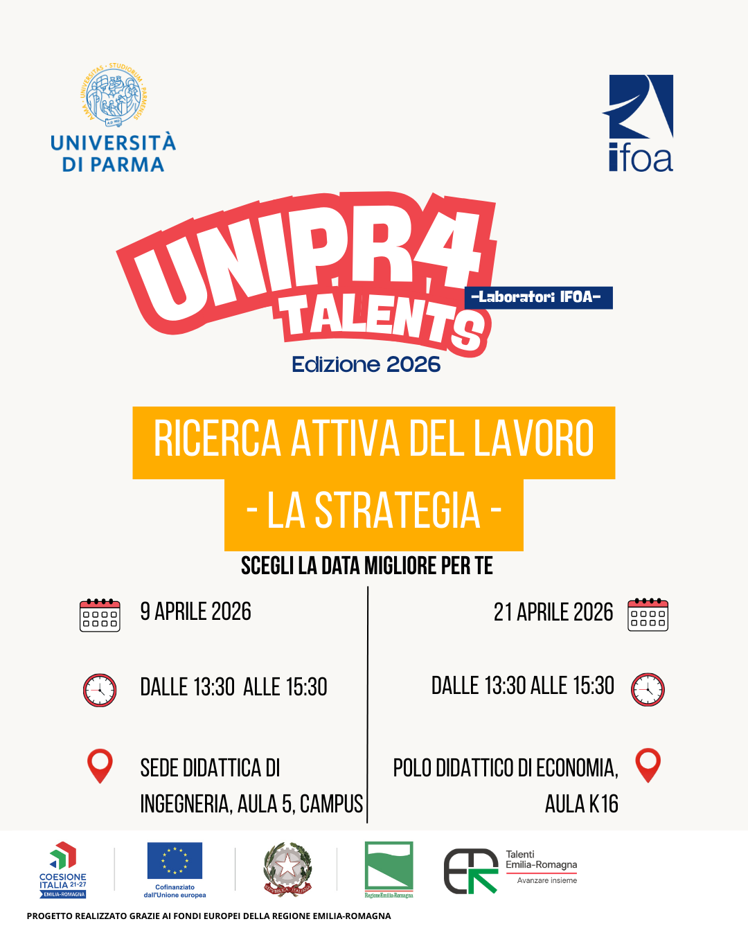 In collaborazione con IFOA, ente di formazione specializzato, è stato organizzato un ciclo di laboratori "Ricerca attiva del lavoro | La Strategia", un’opportunità interattiva pensata per guidare i partecipanti nella costruzione di una strategia efficace di ricerca del lavoro, trasformando il proprio progetto professionale in un piano d’azione concreto e mirato.