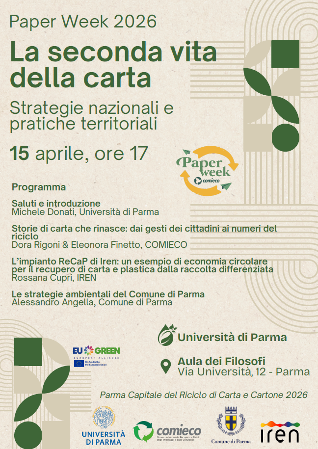 La seconda vita della carta: strategie nazionali e pratiche territoriali. Seminario sul riciclo della carta, con la partecipazione di COMIECO, IREN e Comune di Parma.