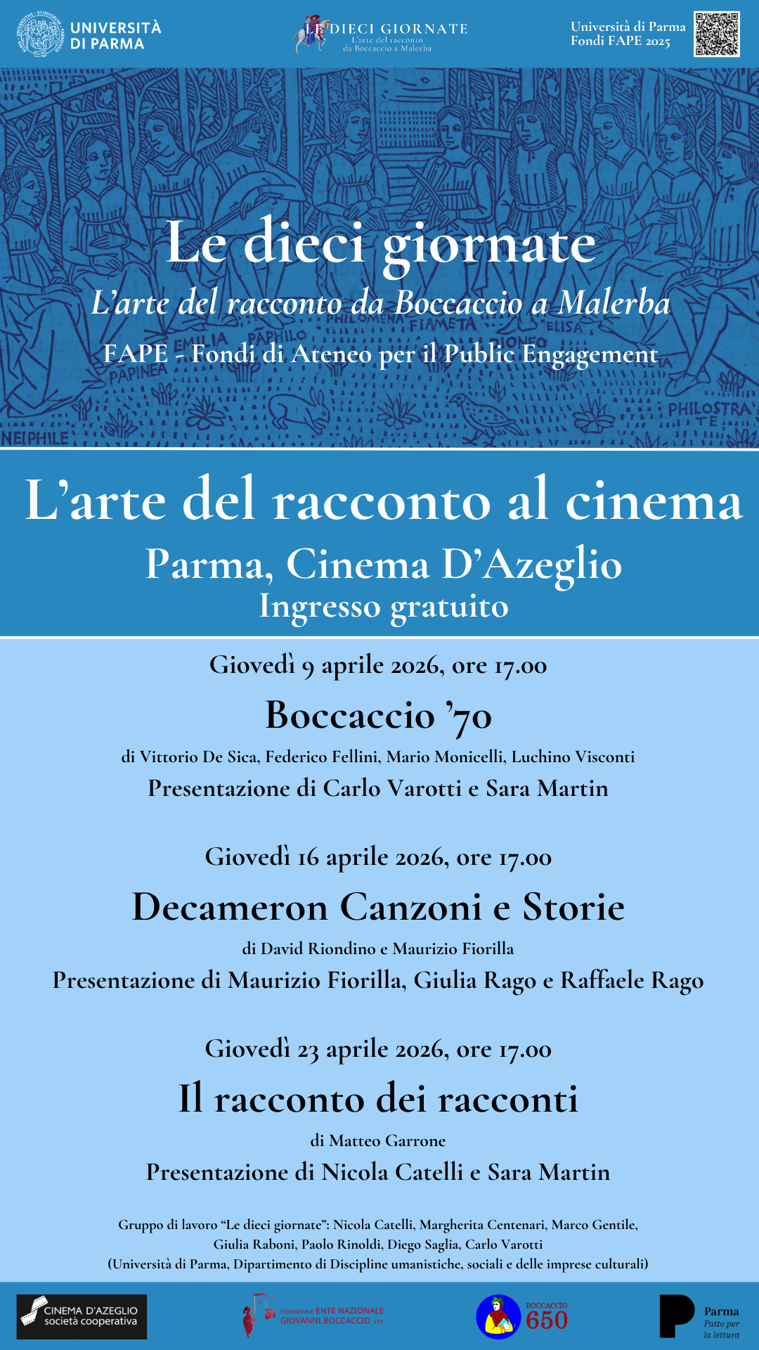 L'iniziativa si inserisce nel progetto Le dieci giornate. L'arte del racconto da Boccaccio a Malerba (Fondi FAPE - Fondi di Ateneo per il Public Engagement) dell'Università di Parma (responsabile scientifico: Nicola Catelli; gruppo di lavoro: Margherita Centenari, Marco Gentile, Giulia Raboni, Paolo Rinoldi, Diego Saglia, Carlo Varotti).