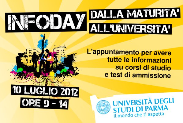 Ultimo aggiornamento 6 luglio 2012 - Per rispondere alle richieste e alle esigenze delle future matricole sui corsi di studio e sugli eventuali test di ammissione dei corsi a numero programmato dell'a.a. 2012-2013, l’Università di Parma organizza per martedì 10 luglio l’evento “Infoday Dalla Maturità all'Università".