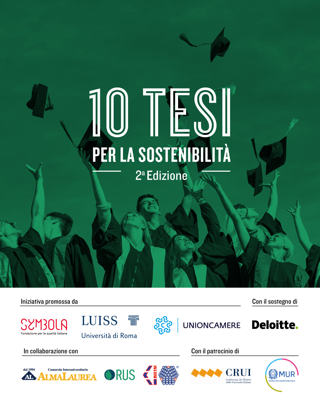 Il Premio è promosso da Fondazione Symbola, Luiss Guido Carli e Unioncamere con il sostegno di Deloitte Climate & Sustainability, in collaborazione con Consorzio Interuniversitario AlmaLaurea, Rete delle Università per lo Sviluppo Sostenibile (RUS) e Consorzio Interuniversitario Nazionale per la Scienza e la Tecnologia dei Materiali (INSTM). L’iniziativa è patrocinata dalla Conferenza dei Rettori (CRUI) e dal Ministero dell’Università e la Ricerca. L’Università di Parma è fra gli Atenei aderenti.