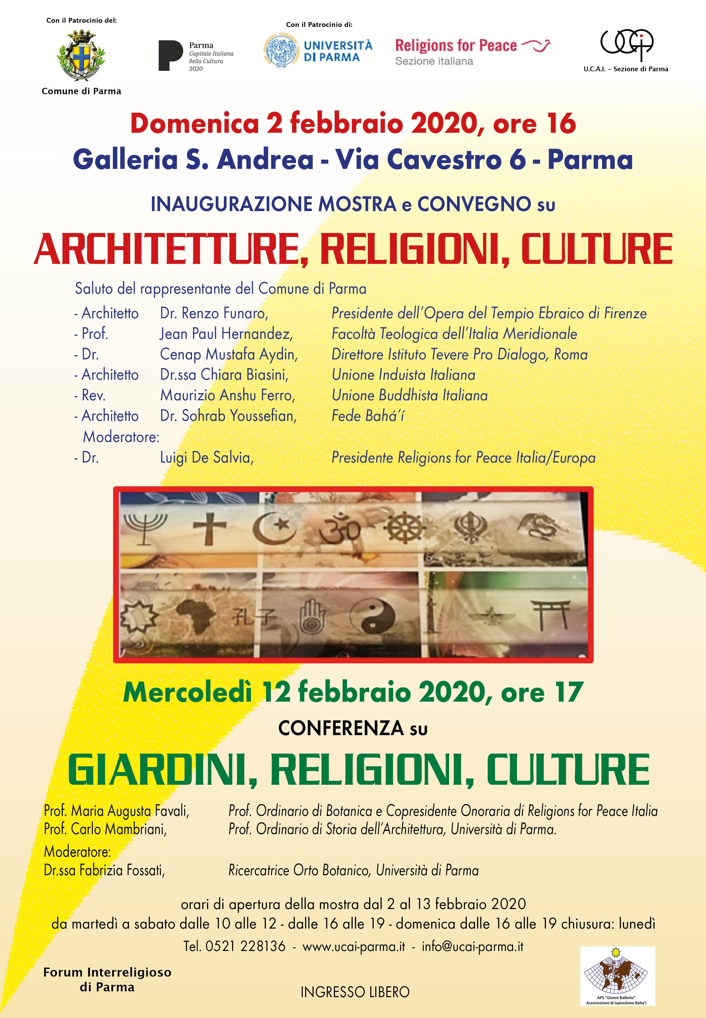 Parma, 30 gennaio 2020 - Domenica 2 febbraio, alle 16 (anteprima di apertura sabato 1 febbraio alle 17), nella Galleria Sant’Andrea (via Cavestro 6 – Parma) si terrà l’inaugurazione di Architetture, religioni, culture, progetto ideato e promosso da Religions for Peace in collaborazione con Associazione “Gianni Ballerio”, Forum Interreligioso di Parma e UCAI (Unione Cattolica Artisti Italiani) Sezione di Parma, con il patrocinio di Comune di Parma e Università di Parma. Il progetto, articolato in una mostra fotografica di alcune tra le più significative architetture rappresentative di varie religioni (orari di apertura: da martedì a sabato 10-12 e 16-19; domenica 16-19; lunedì chiuso)e i due convegni di apertura di domenica 2 febbraio dedicato all’architettura religiosa e quello di chiusura di mercoledì 12 febbraio dedicato ai giardini sacri, rientra nella programmazione di Parma2020. Alla conferenza del 12 febbraio, dal titolo Giardini, religioni, culture, interverranno Carlo Mambriani, docente del Dipartimento di Ingegneria e Architettura dell’Ateneo, e Maria Augusta Favali, già docente all’Università di Parma.Questi eventi si collocano all’interno delle iniziative che si svolgono in varie parti del mondo nell’ambito della settimana dedicata all’amicizia tra i seguaci delle varie religioni, l’Interfaith Harmony Week, istituita nel 2010 dall’ONU e celebrata dal 2011 nella prima settimana di febbraio.L’Associazione Religions For Peace è un movimento multireligioso, vale a dire ad esso partecipano in piena uguaglianza persone che provengono dalle grandi religioni del mondo (Baha’i, Buddismo, Confucianesimo, Cristianesimo, Ebraismo, Giainismo, Induismo, Islam, Scintoismo, Sikh, Taoismo, Zoroastrismo ed altre tradizioni locali), nel rispetto delle convinzioni di ognuna, per mettere a contributo la saggezza spirituale delle diverse fedi religiose e per far crescere l’amore e la fiducia reciproca fra gli uomini e nella ricerca della pace e della giustizia. La convinzione di partenza è quella che dove si realizza una autentica comunione con il divino nasce anche una sincera comunione fra gli uomini e che in tutte le tradizioni religiose esistono insegnamenti di amore e di benevolenza che spingono alla fraternità e alla solidarietà. L’Associazione di Promozione Sociale “Gianni Ballerio” nasce nel 2003; ad oggi ha realizzato circa 500 progetti in Italia e sostiene ONG che operano in ambito internazionale (RD Congo, Togo, Pakistan). Le finalità dell’associazione, ispirata ai principi bahá’í, sono lo sviluppo di una civiltà fondata sulla pace, sulle pari opportunità tra donne e uomini e bambini, sulla giustizia ed equità nei rapporti tra i popoli, sul diritto alla salute e il diritto all’educazione per ogni essere umano, sul dialogo e la collaborazione tra le religioni, sulla conoscenza di culture diverse e sulla sostenibilità ambientale ed energetica.Il Forum Interreligioso di Parma nasce nell’ottobre 2006. Come spiega il coordinatore Luciano Mazzoni «la costante collaborazione tra le principali presenze religiose è il senso della nostra assidua presenza e della nostra costante attenzione verso ogni forma di violazione della libertà religiosa oltre che dei diritti inalienabili della persona umana. Confermiamo la nostra disponibilità a fungere da elemento di servizio e supporto alle Istituzioni e alla comunità locale».