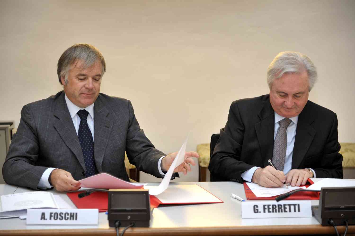 Parma, 26 ottobre 2011 - Mercoledì 26 ottobre, alle ore 11, presso la Sala del Senato del Palazzo Centrale dell’Ateneo, è stata firmata dal Rettore Prof. Gino Ferretti e dal Presidente dell’Ordine dei Dottori Commercialisti ed Esperti Contabili di Parma Dott. Andrea Foschi la convenzione tra l’Ateneo e l’Ordine relativamente alle nuove modalità di accesso alla professione di Dottore Commercialista. Tra gli intervenuti il Prof. Stefano Azzali, coordinatore del corso di laurea in Amministrazione e Direzione Aziendale della Facoltà di Economia dell’Ateneo, e il Prof. Pier Luigi Marchini, docente presso la stessa Facoltà. L’accordo nasce nell’ambito della “convenzione quadro” siglata fra il Ministero dell’Istruzione, dell’Università e della Ricerca e il Consiglio Nazionale dei Dottori Commercialisti ed Esperti Contabili relativa all’accesso e allo svolgimento delle prove per la professione di Dottore Commercialista. A livello locale tale accordo prevede, a partire dall’anno 2012, l’esenzione dalla prima prova per l’esame di Dottore Commercialista per coloro che hanno conseguito il titolo di laurea magistrale in Amministrazione e Direzione Aziendale presso la Facoltà di Economia dell’Università di Parma. La firma di questo accordo prevede inoltre la possibilità per gli iscritti a tale corso di laurea magistrale di svolgere pratica professionale, durante il proprio percorso di studi, presso Dottori Commercialisti o Esperti Contabili iscritti all’Albo Territoriale, attraverso un tirocinio professionale della durata non inferiore a 1000 ore. L’Università di Parma e l’Ordine dei Dottori Commercialisti ed Esperti Contabili convengono sulla necessità di sviluppare adeguate forme di raccordo tra il mondo della formazione e il mondo del lavoro, al fine di integrare i processi formativi con la cultura d’impresa e di agevolare le future scelte professionali degli studenti mediante la conoscenza diretta del mondo del lavoro.