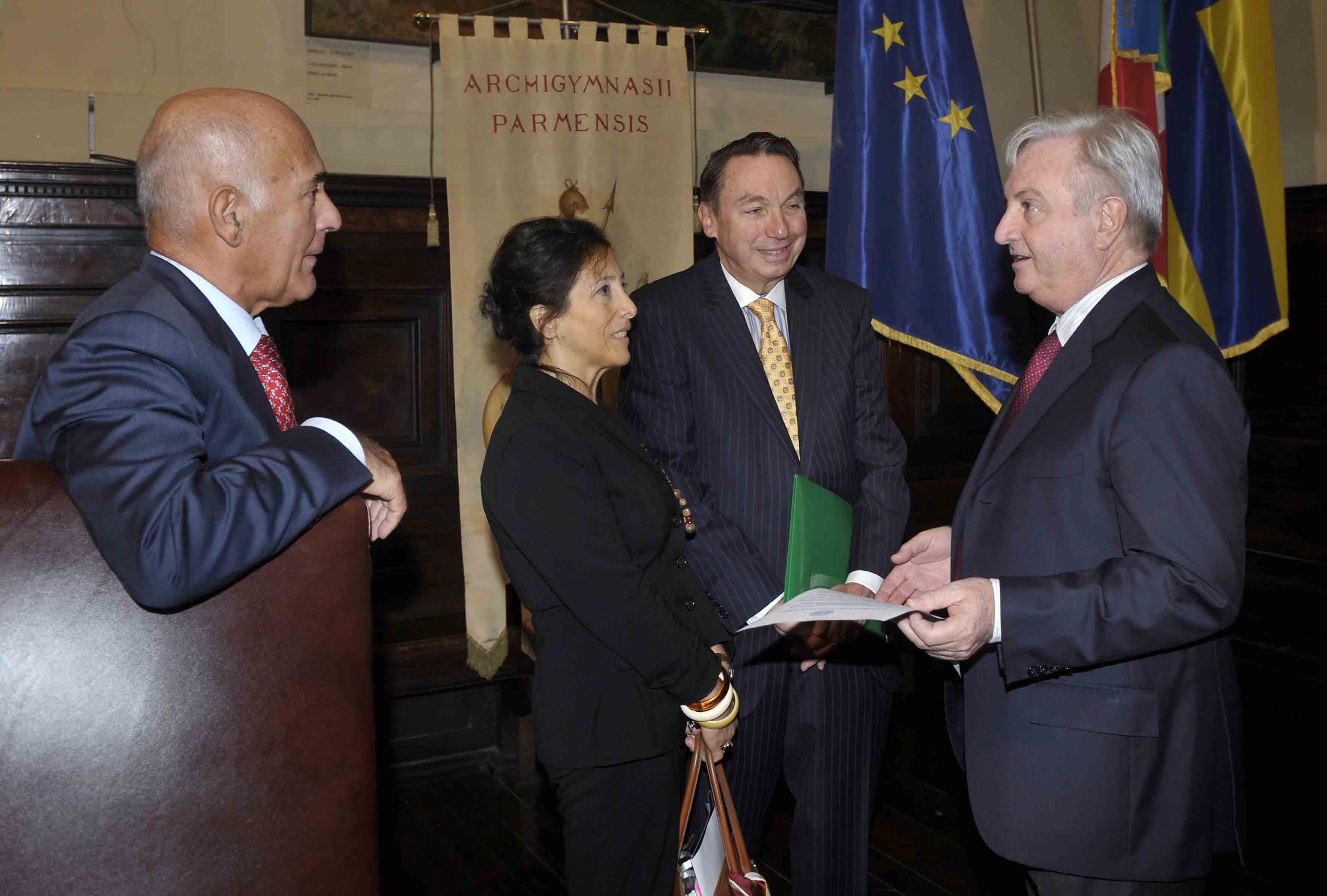 Parma, 5 ottobre 2010 - Martedì 5 ottobre, alle ore 10,30, presso l’Aula Magna del Palazzo Centrale dell’Ateneo, si è svolta la conferenza "The European Union and the Global Political Issues: a View from the United States". La conferenza, organizzata dalla Facoltà di Scienze Politiche del nostro Ateneo, è stata tenuta dal Prof. Paul Green, Direttore dell’Institute for Politics della Roosevelt University di Chicago. L’incontro è stato introdotto dal Magnifico Rettore dell’Ateneo Prof. Gino Ferretti e dal Presidente del Comitato Ordinatore della Facoltà di Scienze Politiche Prof. Alessandro Duce. La crisi economica, le minacce del terrorismo ma anche quelle del riscaldamento globale e del diffondersi della povertà, l’instabilità del sistema finanziario: da questi e da molti altri problemi nasce la necessità di una riflessione sulle sfide e le minacce globali. E sulle risposte che la politica può dare, in particolare da parte dei due principali attori democratici mondiali, gli Stati Uniti e l’Unione Europea. Per questo motivo la Facoltà di Scienze politiche dell’Università di Parma ha invitato un illustre studioso a trattare il tema “The European Union and the Global Political Issues: a View from the United States”. Il relatore d’eccezione è il Prof. Paul Green, noto politologo americano, amico personale del Presidente Obama, con cui ha avuto negli anni passati – proprio a Chicago - rapporti intellettuali e politici. Ai due interventi introduttivi e alla relazione del Prof. Green seguirà un dibattito con il pubblico. E’ previsto un servizio di traduzione.