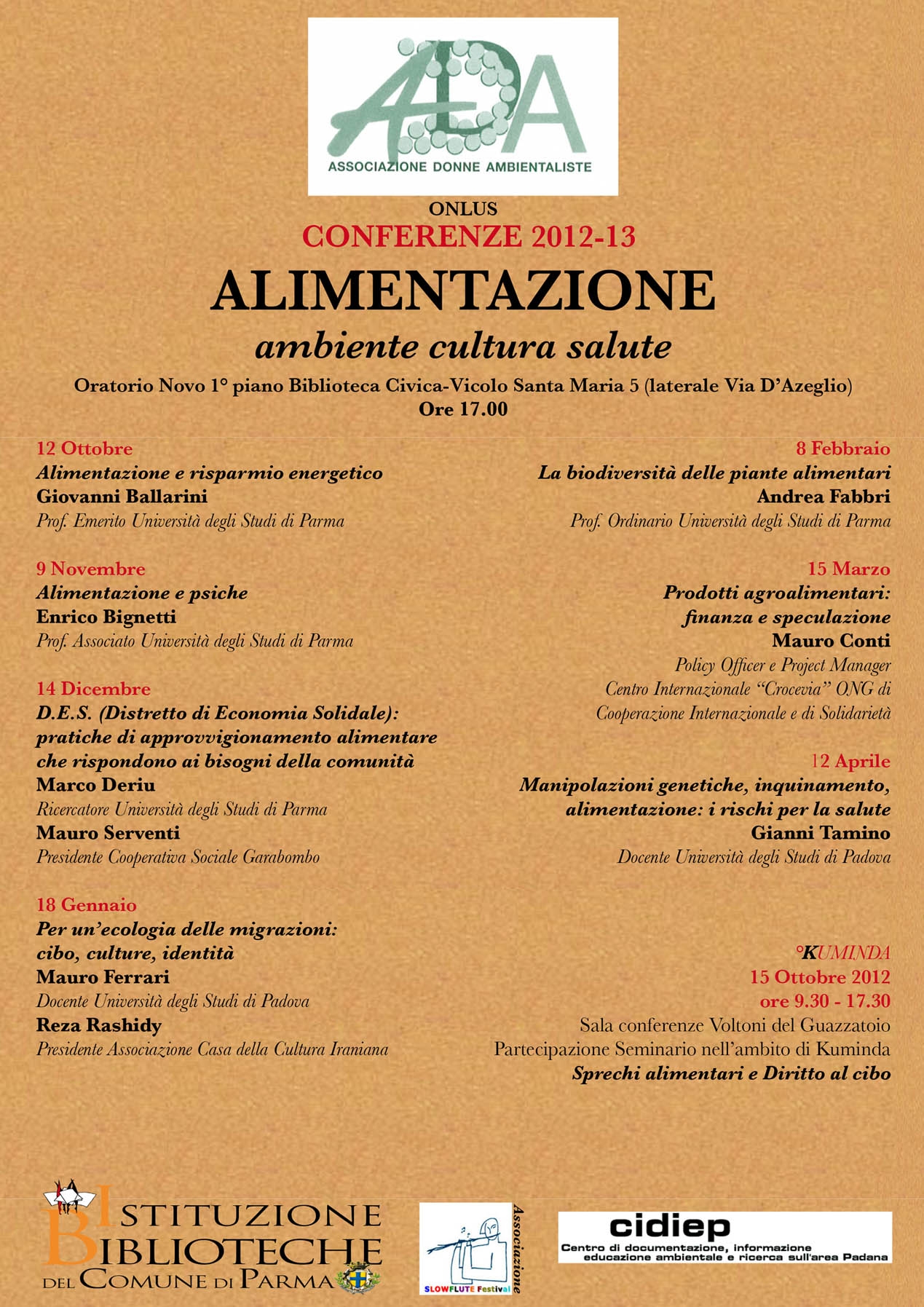 Parma, 5 febbraio 2013 – Venerdì 8 febbraio, alle ore 17, presso l’Oratorio Novo (vicolo Santa Maria 5 - Parma), l'Associazione Donne Ambientaliste (ADA Onlus) propone l'incontro con il prof. Andrea Fabbri, docente del Dipartimento di Scienze degli Alimenti dell’Ateneo, sul tema "La biodiversità delle piante alimentari".