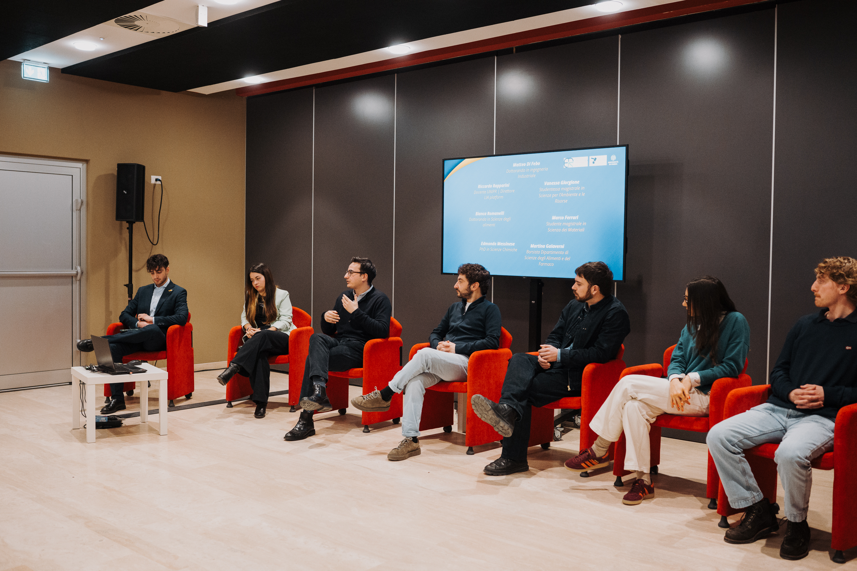Il panel ha volutamente rappresentato un insieme eterogeneo di esperienze: chi sta sviluppando un’idea imprenditoriale in fase avanzata, chi è coinvolta/o in uno spin-off universitario, chi ha già depositato un brevetto e chi, agli inizi del proprio percorso accademico, ha scelto di avvicinarsi ai temi dell’imprenditorialità per curiosità e desiderio di esplorazione. Una pluralità che testimonia come le iniziative dell’Università di Parma siano progettate per accompagnare studentesse e studenti in momenti diversi della loro formazione, offrendo opportunità di orientamento, sperimentazione e crescita anche senza partire da un progetto già definito.