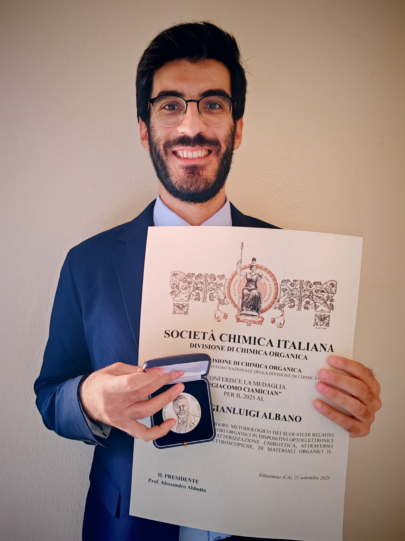 La cerimonia di consegna della Medaglia è avvenuta in occasione del XLII Convegno Nazionale della Divisione di Chimica Organica della Società Chimica Italiana (CDCO 2025), che si è svolto nei giorni scorsi a Villasimius (Cagliari). Nel corso del convegno il prof Albano ha tenuto una lecture plenaria nella quale ha esposto gli aspetti salienti della sua ricerca.