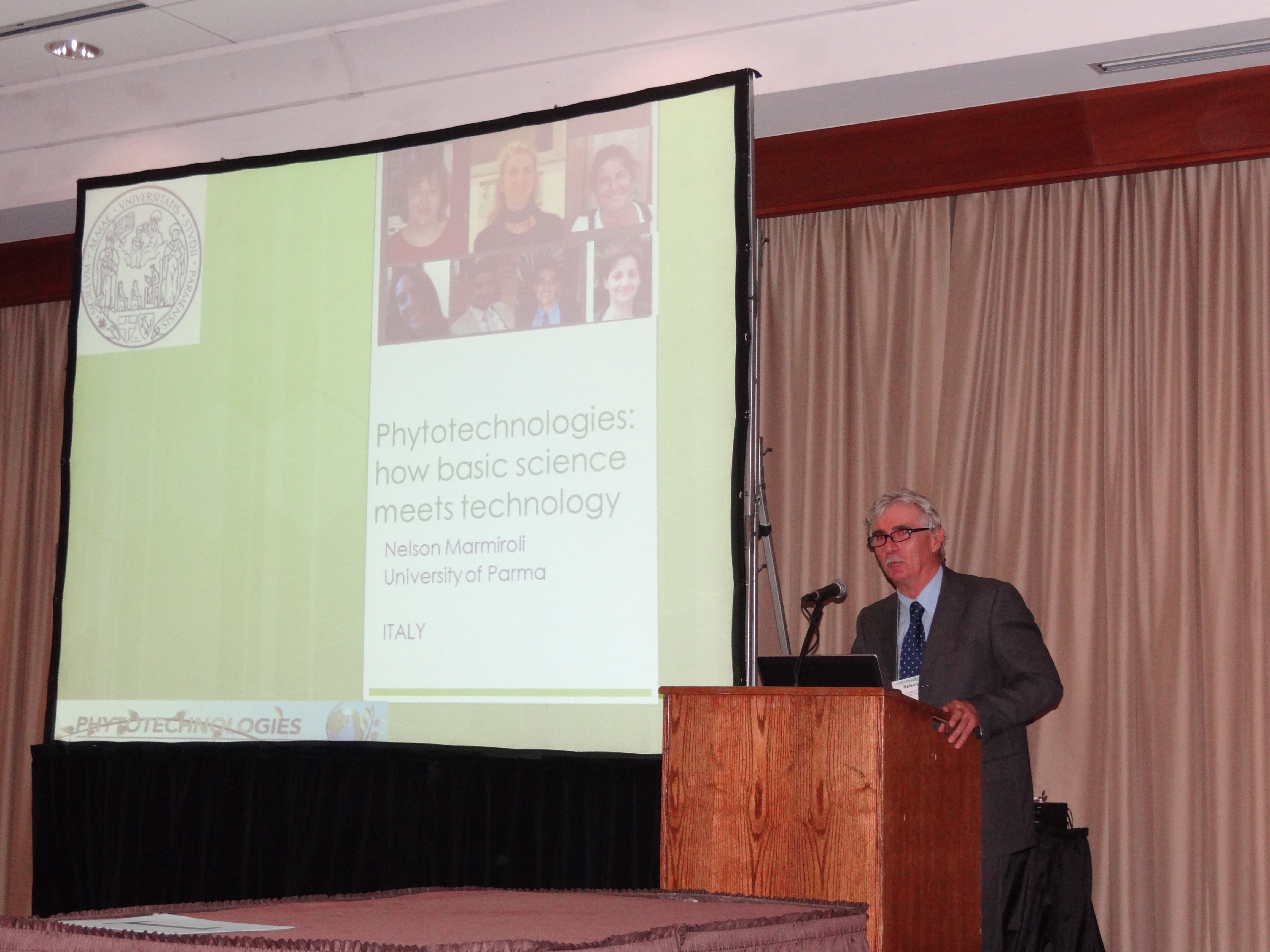 Parma, 16 ottobre 2013 – Lo scorso martedì 2 ottobre è stato consegnato al prof. Nelson Marmiroli, docente di Biotecnologie e Direttore del Dipartimento di Bioscienze dell'Ateneo, il premio "Milton P. Gordon Award for Excellence in Phytoremediation", che viene conferito dalla International Phytotechnologies Society per onorare chi si sia distinto per eccellenza nella ricerca e nelle attività di formazione, insegnamento e divulgazione relative alle tecnologie verdi e alla bonifica ambientale. Ha ricevuto il premio dalle mani del vincitore dell’anno precedente, il prof. Jaco Vangronsveld dell’Università di Hasselt in Belgio, in presenza del Presidente della Società Internazionale, la prof.ssa Lee Newman della State University di New York.La International Phytotechnologies Society, che si occupa infatti di “fitotecnologie”, un termine con cui si comprendono tutte le applicazioni delle piante, siano esse erbe, arbusti o alberi, acquatiche o terrestri, alla decontaminazione e depurazione dell’inquinamento ambientale, alla produzione di energie alternative e al risparmio energetico, alla sostenibilità delle produzioni, si riunisce ogni anno alternando sedi nordamericane ad altre sedi in Europa o Asia.Quest’anno si è riunita dal 2 al 5 ottobre presso la State University di New York. E appunto durante la cerimonia di apertura è stato conferito al prof. Marmiroli il premio intitolato a Milton P. Gordon, docente della Washington University, scomparso nel 2005, uno dei pionieri nel campo della ecologia delle piante e della loro utilizzazione per mitigare l'effetto degli inquinanti nell'ambiente. La premiazione è stata accompagnata da una lezione plenaria del prof. Marmiroli, di fronte a una platea di oltre 250 scienziati in rappresentanza di 28 nazioni. Durante la lezione, il prof. Marmiroli ha ripercorso gli eventi più importanti della sua carriera nel campo delle biotecnologie ambientali e i risultati ottenuti assieme al suo gruppo di ricercatori. Nel corso degli anni si sono sviluppate collaborazioni con importanti Istituti italiani ed esteri, ma anche con realtà territoriali e aziende private, tanto nel campo della ricerca che in quello della formazione.I principali risultati ottenuti hanno consentito di arrivare a formulare una ipotesi di lavoro che ha suscitato molto interesse soprattutto nei giovani presenti.Il cardine di questa proposta è che il problema dell’inquinamento è troppo complesso per essere affrontato unilateralmente dal punto di vista monodisciplinare. Al contrario occorre un approccio che coinvolga discipline e interessi diversi e non solo scientifici. Inoltre occorre che esso sia pragmatico, ma funzionale al problema che deve risolvere, vale a dire aumentare la funzionalità e la resilienza delle piante al fine di renderle adattabili ad ambienti sempre più caratterizzati da problemi di inquinamento.Per fare questo si propone di costruire uno “spazio comune di disegno” per raggiungere questo obiettivo: spazio comune in cui si misurano e si complementano discipline diverse, come la biologia, l’agronomia, la geologia, l’idrologia, l’economia.Nel corso del convegno il gruppo di ricerca guidato dal prof. Marmiroli era presente con comunicazioni orali e poster, presentati dalle proff. Elena Maestri e Marta Marmiroli, che hanno inoltre svolto le funzioni di chair e presidente di due sessioni del convegno dedicate alla decontaminazione di inquinanti metallici e di nanoparticelle, di fronte ad un nutrito pubblico di ricercatori.Le ricerche sul disinquinamento di nanoparticelle contaminanti sono tra le più recenti attività del gruppo del prof. Marmiroli, e stanno ottenendo grande risonanza in diversi convegni nazionali e internazionali, tra cui il recente convegno dell’Associazione Italiana di Biologia Generale tenutosi a Rende (Cosenza), il 28 e 29 Settembre. Una parte degli argomenti trattati nel corso della lezione plenaria e del conferimento del premio sono stati ripresi dal prof. Marmiroli nella comunicazione Aumentare l’efficienza e la funzionalità delle strutture verdi urbane, che è stata presentata sabato 12 ottobre nel corso del Forum permanente per lo sviluppo di politiche territoriali integrate organizzato dalla Amministrazione di Parma. In questa comunicazione il prof. Marmiroli ha discusso il futuro delle infrastrutture verdi urbane alla luce delle ultime conoscenze scientifiche sul mondo vegetale.