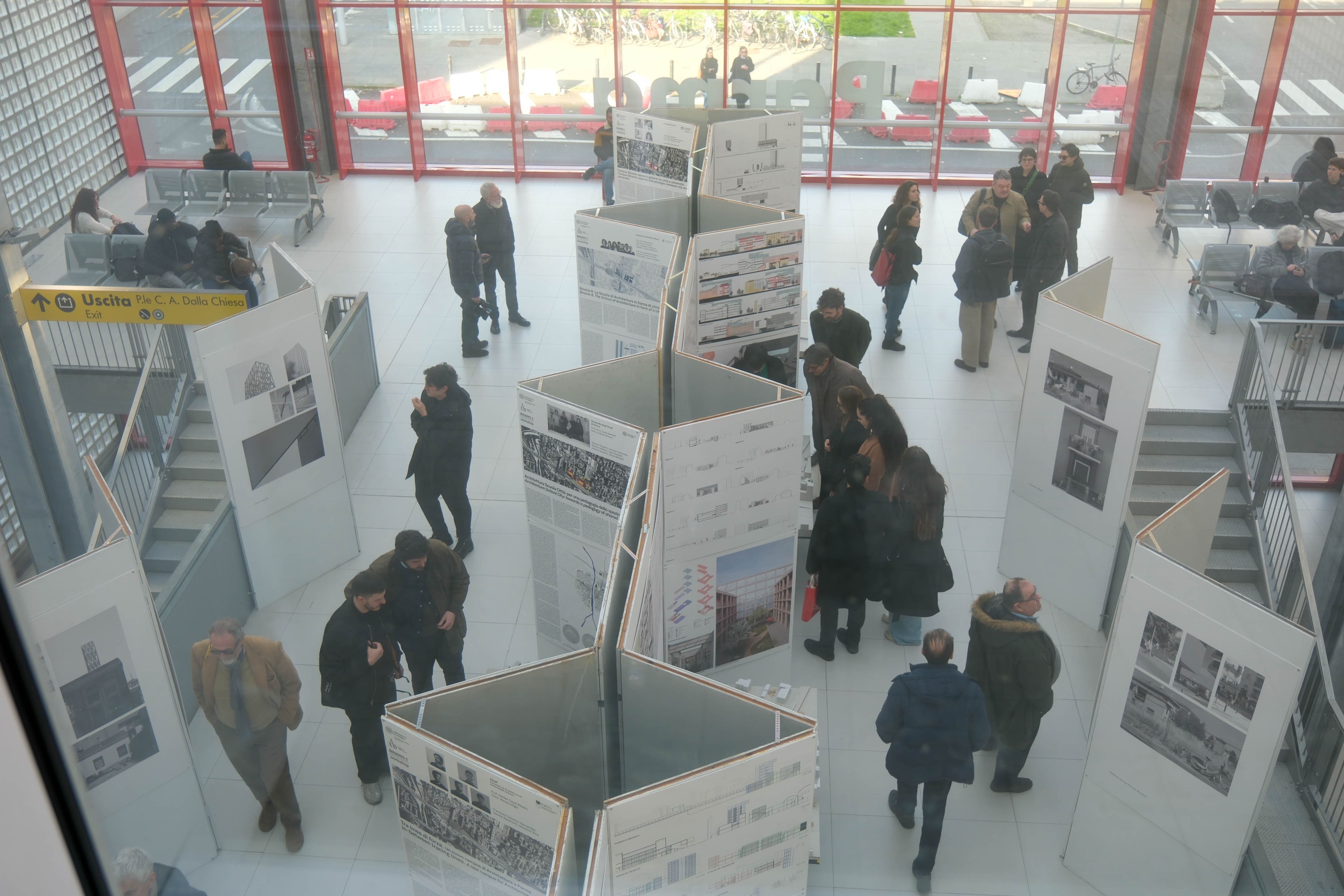 Il lavoro di progettazione dei gruppi, durato un anno e che ha coinvolto decine di giovani ricercatori e ricercatrici, studentesse e studenti appartenenti alle diverse scuole, viene messo a disposizione della città attraverso la mostra allestita nel piano ammezzato della Stazione di Parma, in uno spazio di fatto coinvolto nei disegni di progetto, grazie alla collaborazione di Rete Ferroviaria Italiana (Gruppo Ferrovie dello Stato Italiane). Uno spazio pubblico che aiuta a comprendere la fattibilità delle proposte e a sensibilizzare la cittadinanza rispetto a un processo di trasformazione ancora in fieri.
