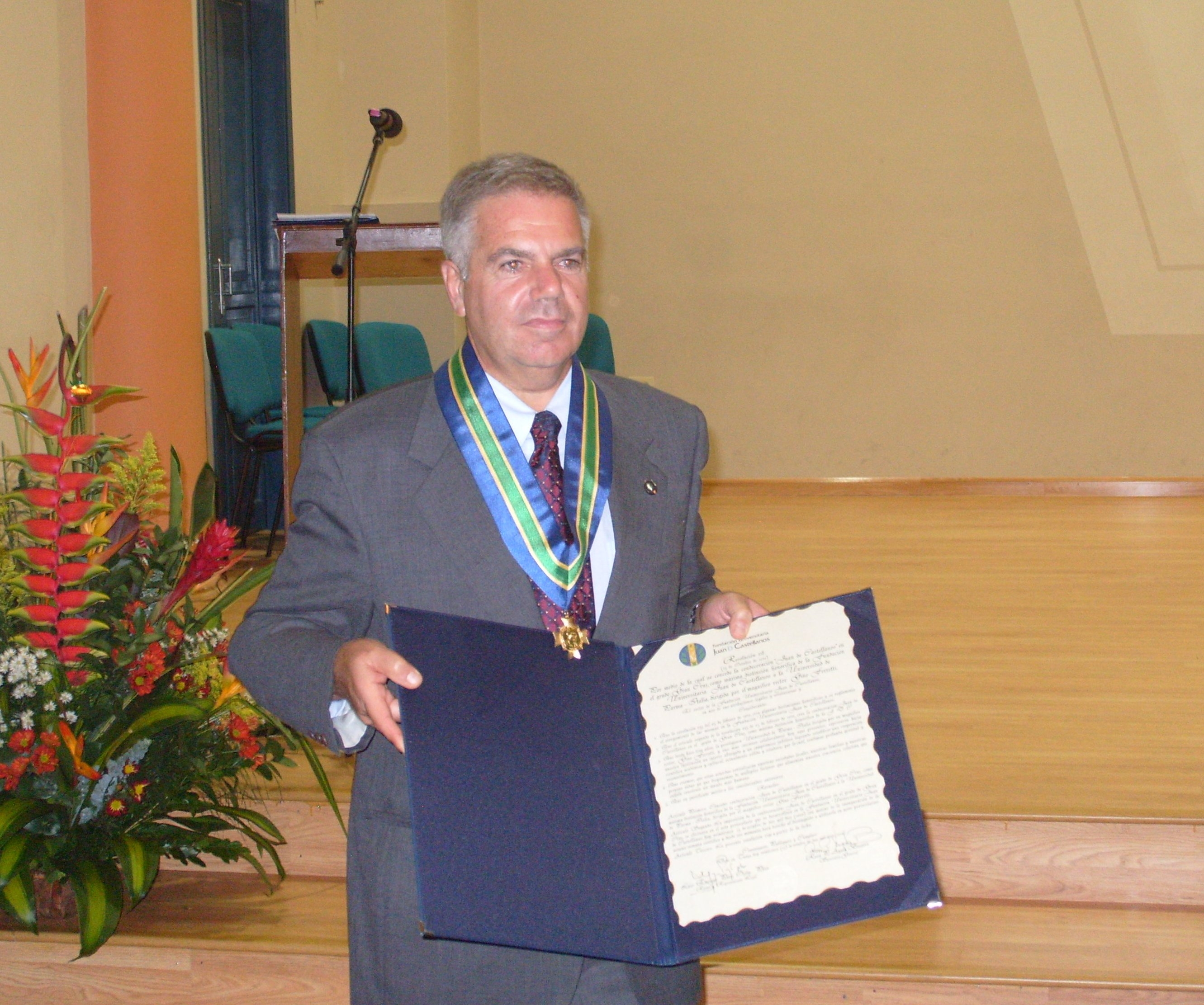 Al termine della cerimonia il Rettore della Fondazione ha consegnato al Prof. Cavirani, in rappresentanza dell’Università di Parma, la Gran Croce di merito, massima onorificenza della Fondazione Universitaria Juan de Castellanos.