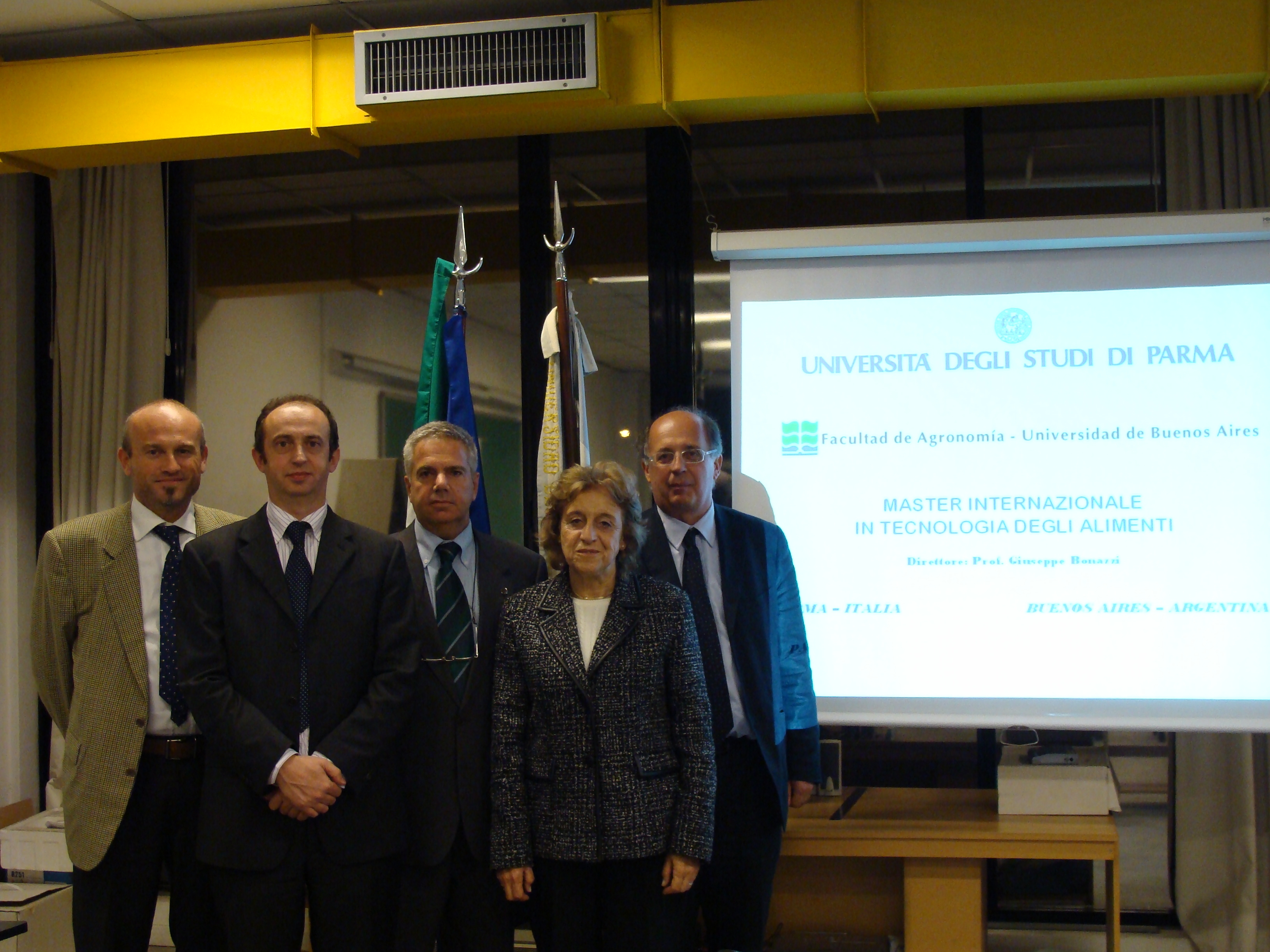 Lo scopo della visita è stata la presentazione a Autorità, Imprenditori e aspiranti partecipanti della terza Edizione del Master Internazionale in Tecnologia degli alimenti, che si svolge in cooperazione tra Università di Parma e UBA. Nelle due precedenti edizioni il corso, che ha sede operativa presso l’UBA e direzione presso il nostro Ateneo, ha visto un’attività didattica coordinata ed integrata tra docenti dell’Università di Parma e della locale Facoltà di Agraria.