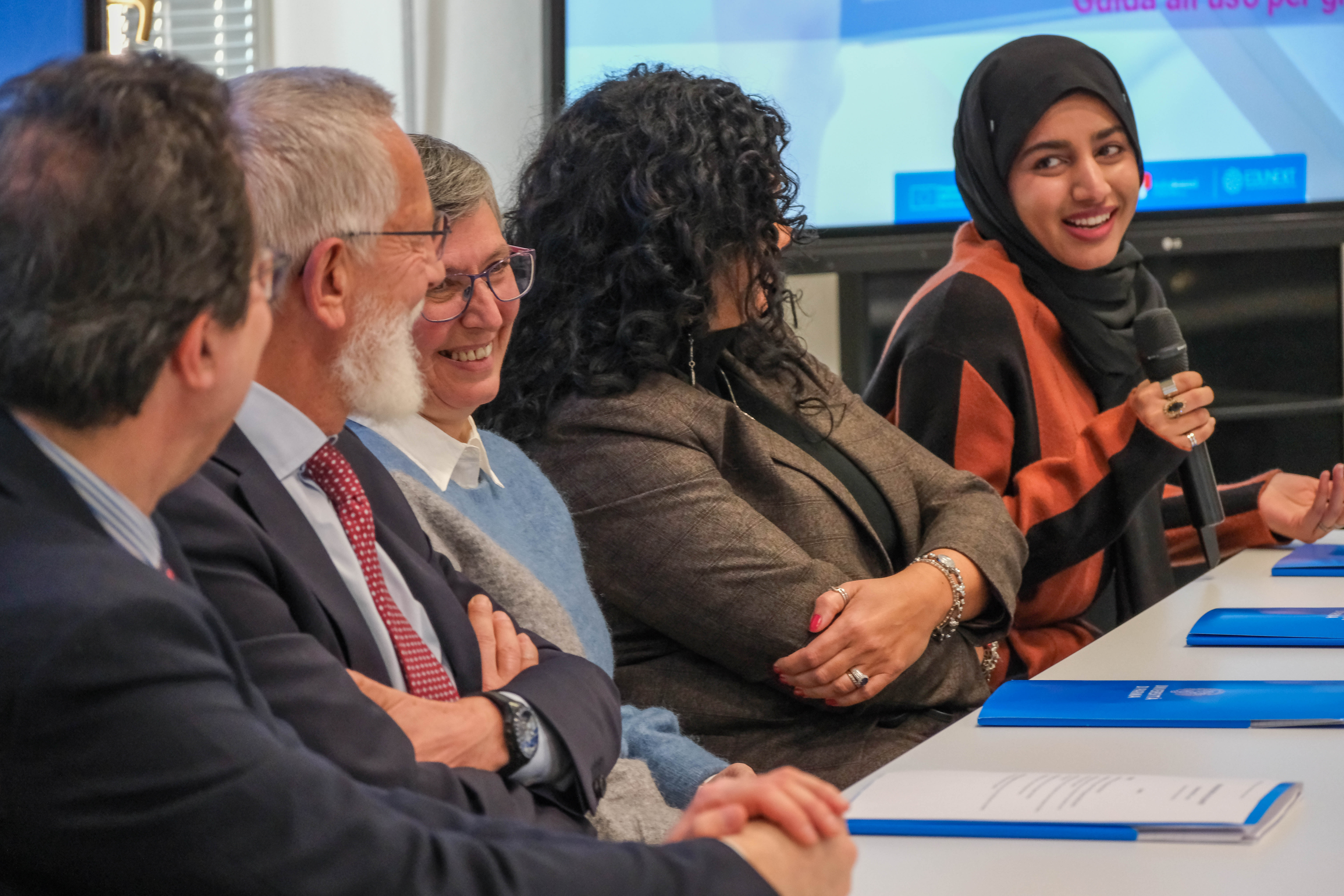 Intervenuti anche il Prorettore alla Didattica Simone Baglioni, la Presidente del corso di laurea in Global Studies for Sustainable Local and International Development and Cooperation Michela Canepari, il Presidente del corso di laurea magistrale in Innovazione organizzativa, digitale e amministrativa della P.A. Alberto Petroni, la Presidente del corso di laurea in Ingegneria gestionale Barbara Bigliardi, Claudia Ledda del Centro SELMA - Servizi E-Learning e Multimediali di Ateneo e Fiza Maqbool, studentessa del Corso di Laurea in Global Studies for Sustainable Local and International Development and Cooperation.