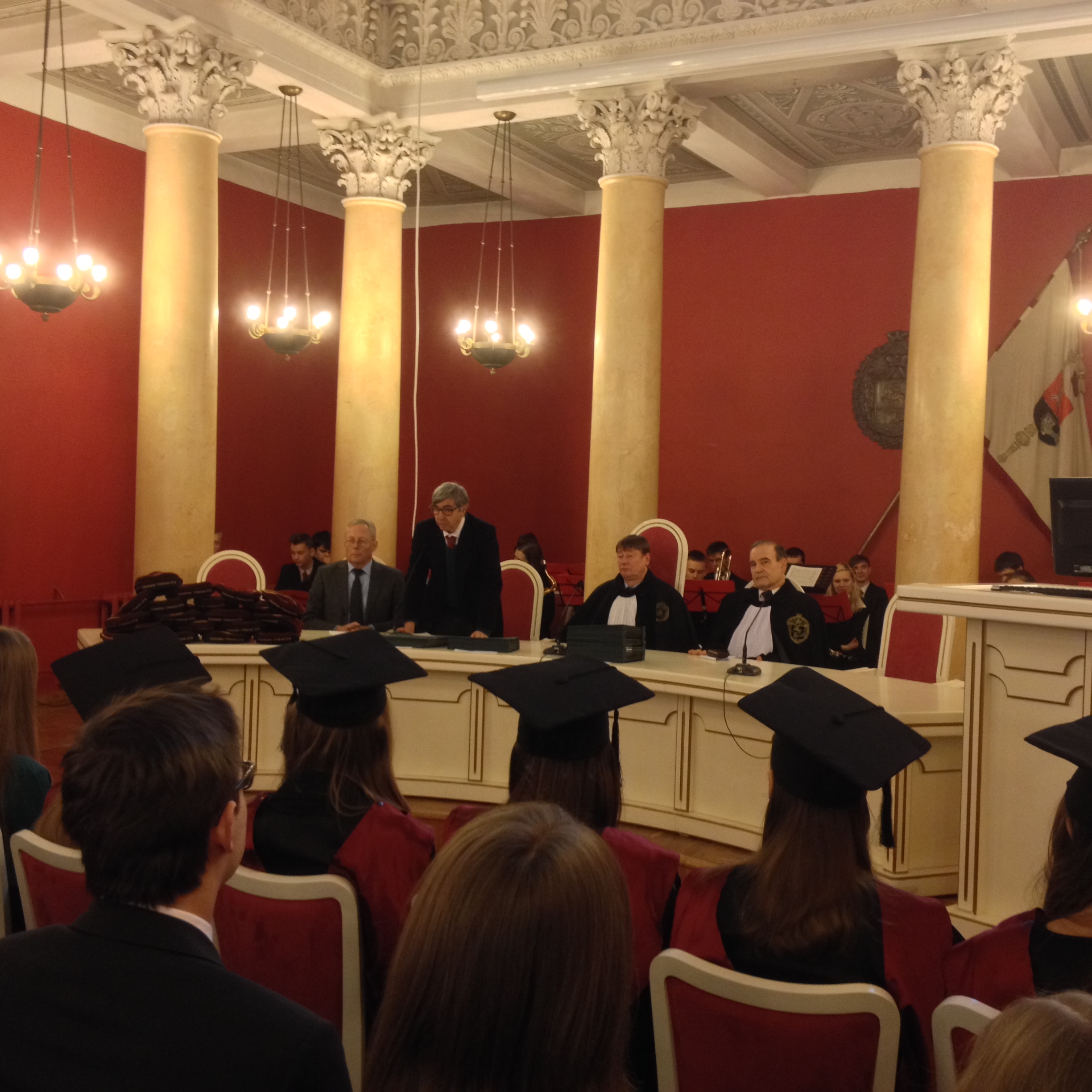 Il prof. Guglielmo Wolleb, membro della Commissione di laurea, ha ringraziato a nome del Rettore Loris Borghi l’Università di Vilnius, esprimendo piena soddisfazione per questo primo risultato ottenuto grazie all’accordo di cooperazione.