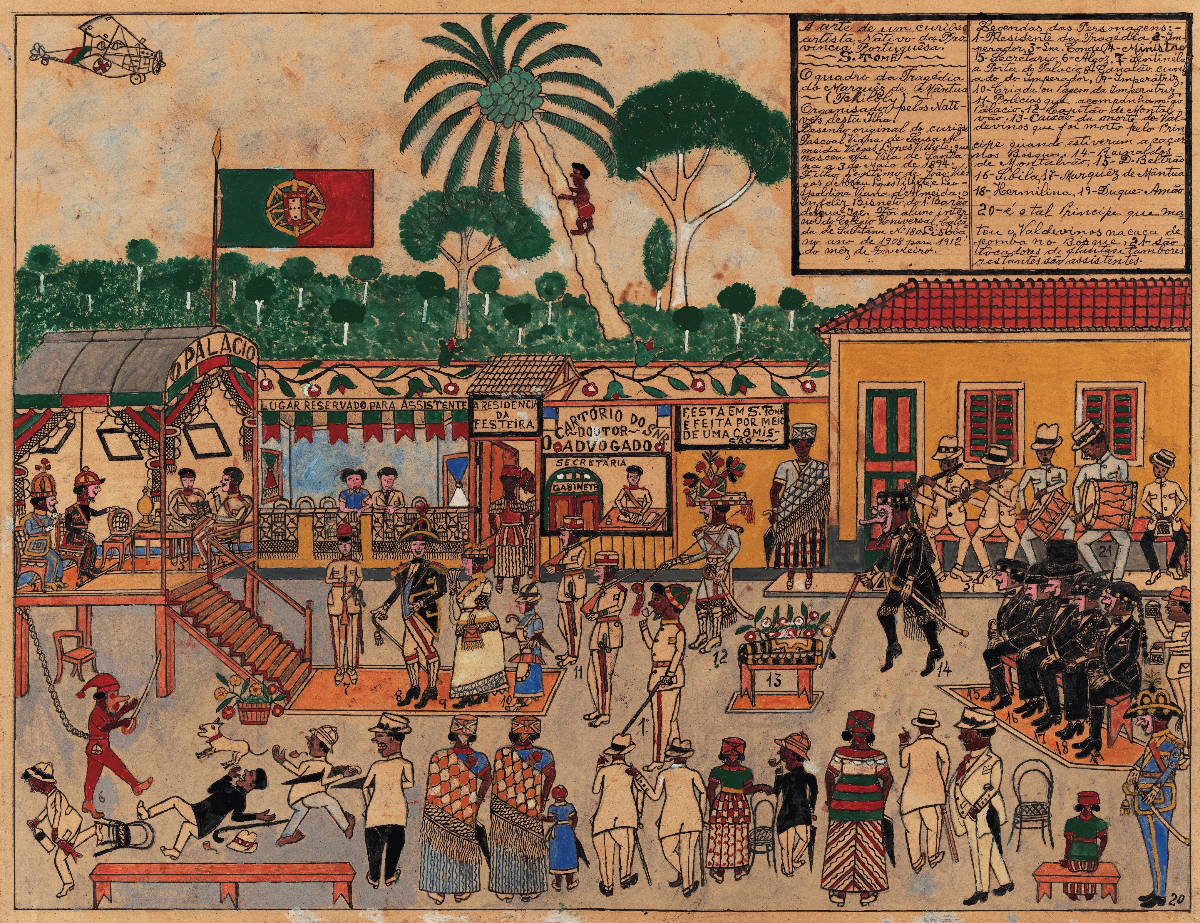 Organizzata in 30 pannelli tematici, la mostra enuncia i miti e spiega le realtà coloniali, rivelando, attraverso il sapere storico, le linee di forza del colonialismo portoghese nei secoli XIX e XX, mettendo in evidenza, nello stesso tempo, la complessità organizzativa delle società africane, le loro forme di resistenza alla colonizzazione e la preservazione delle loro identità sociali e culturali, contribuendo così a decostruire le costruzioni mitologiche del colonialismo portoghese.