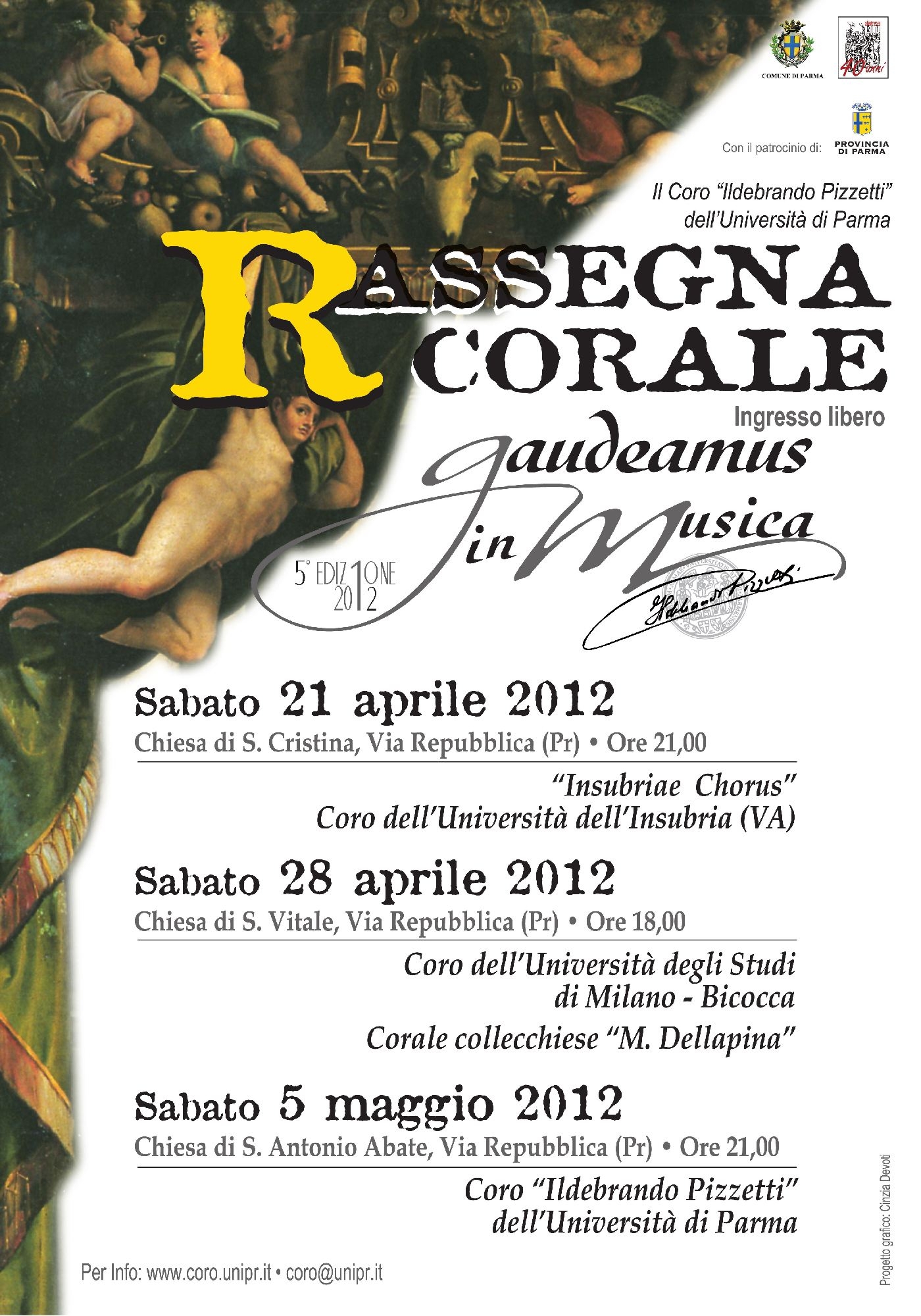 Parma, 18 aprile 2012 - Torna dal 21 aprile al 5 maggio la quinta edizione della rassegna “Gaudeamus in musica”, organizzata dal coro "Ildebrando Pizzetti" dell'Università degli Studi di Parma, diretto dal Maestro Ilaria Poldi. Anche quest'anno parteciperanno cori provenienti da tutta Italia. L'evento si svolgerà in 3 appuntamenti: - sabato 21 aprile, alle ore 21, presso la chiesa di S. Cristina (via Repubblica - Parma), si esibirà il "Insubriae Chorus", Coro dell'Università dell'Insubria (VA). Verranno proposti brani polifonici "a cappella" tratti dalla tradizione europea e sud americana - sabato 28 aprile, alle ore 18, presso la chiesa di S. Vitale (via Repubblica - Parma), ci saranno due gruppi protagonisti: il Coro dell'Università di Milano Bicocca e la Corale collecchiese "M. Dellapina". I cori proporranno alcune delle più belle pagine della polifonia sacra italiana ed europea attraverso l'esecuzione di brani di Palestrina, Mozart, Bach e altri autori dal Cinquecento al XX secolo - sabato 5 maggio, alle ore 21, presso la chiesa di S. Antonio Abate (via Repubblica - Parma), il Coro "Ildebrando Pizzetti" dell'Università degli Studi di Parma sarà impegnato in un concerto che vedrà unire due sonorità apparentemente distanti: la polifonia "a cappella" e le note del sax suonate dal M° Luigi Alessandri. Questo binomio inusuale farà scoprire al pubblico sonorità nuove e atmosfere con richiami alla musica jazz e alle improvvisazioni che la caratterizzano. L'ingresso a tutti gli appuntamenti è libero. La manifestazione ha ottenuto il patrocinio dalla Provincia di Parma. Per altre informazioni: www.coro.unipr.it, coro@unipr.it