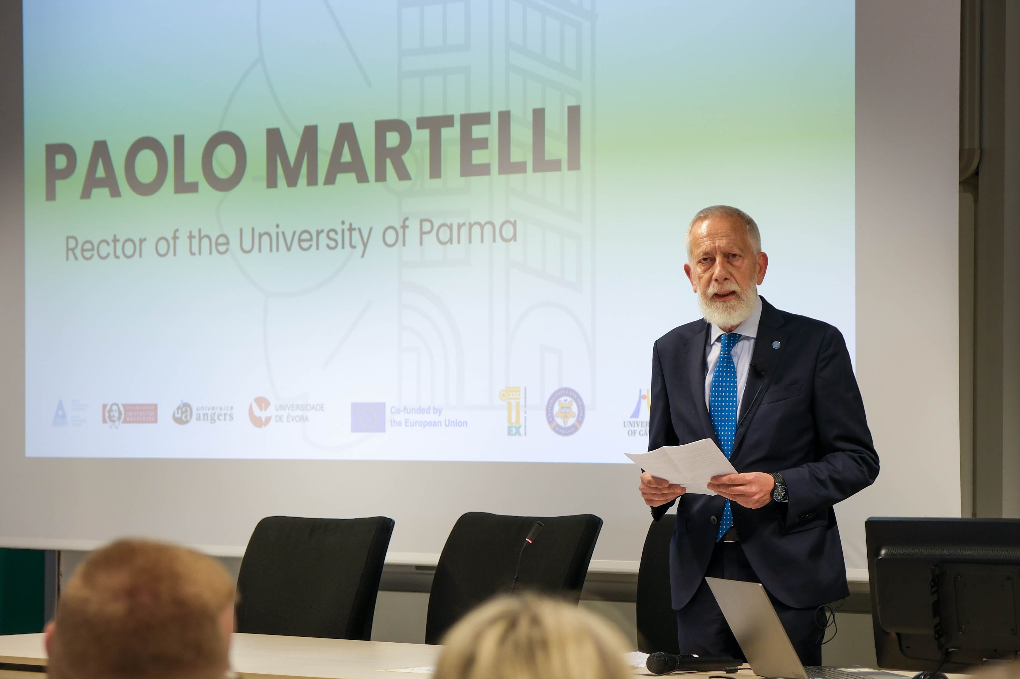 «Abbiamo con noi in questi giorni circa 150 studentesse e studenti dalle sedi dell’Alleanza europea EU GREEN in questa Student Conference che mette al centro proprio loro, studentesse e studenti, come attori del cambiamento dell’Università. Il documento che scriveranno si intitolerà proprio “A Road to Your Ideal University” - ha detto il Rettore Paolo Martelli - e si propone di offrire suggerimenti e indicazioni appunto di cambiamento, di evoluzione, avendo come orizzonte il quadro europeo. Si tratta di una tappa importante anche per l’avvicinamento di Parma al 2027, anno in cui la nostra città sarà Capitale Europea dei Giovani».