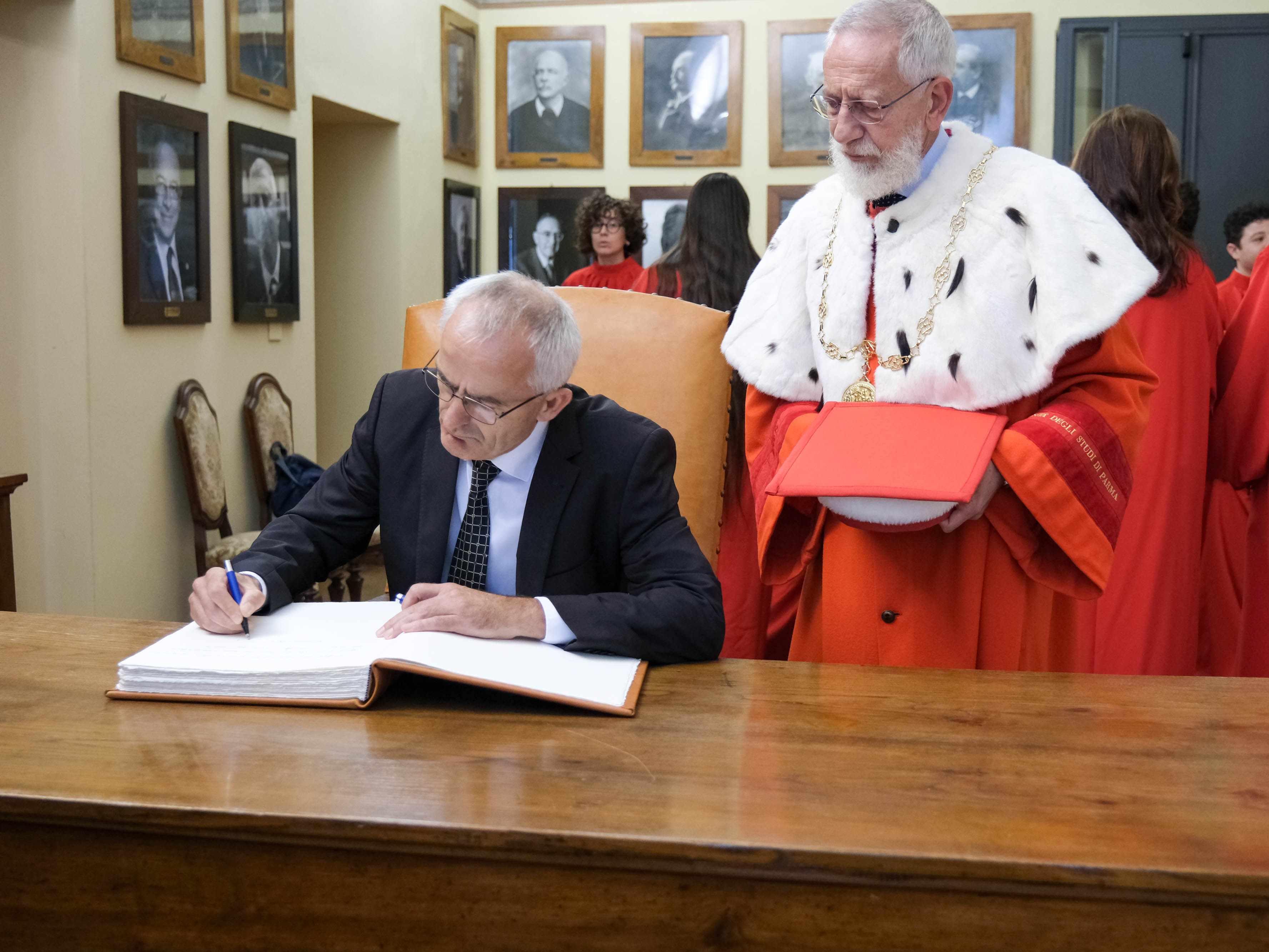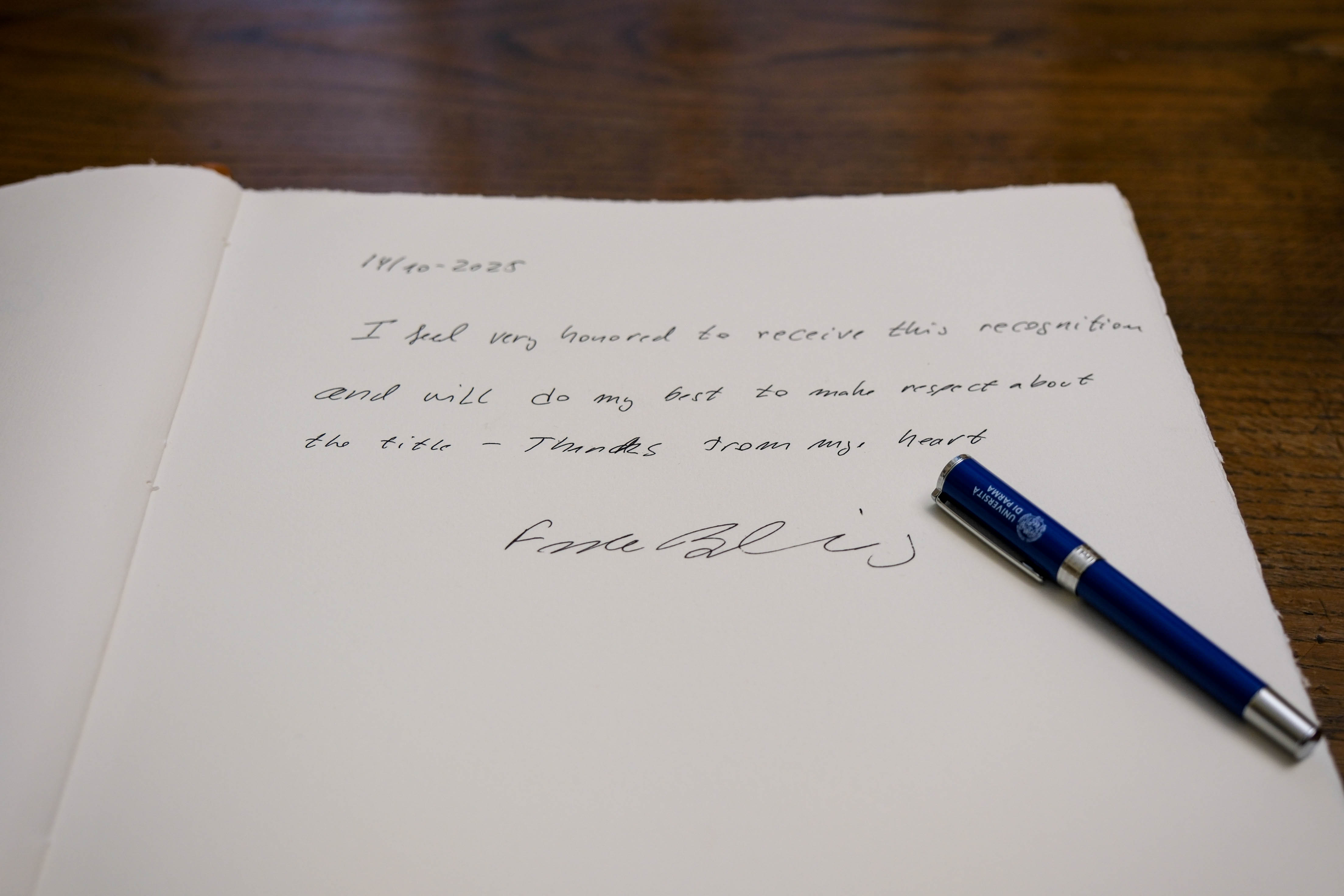 Poco prima dell’inizio della cerimonia il prof Blaabjerg ha scritto un pensiero e la firma nel libro d’onore dell’Università di Parma.