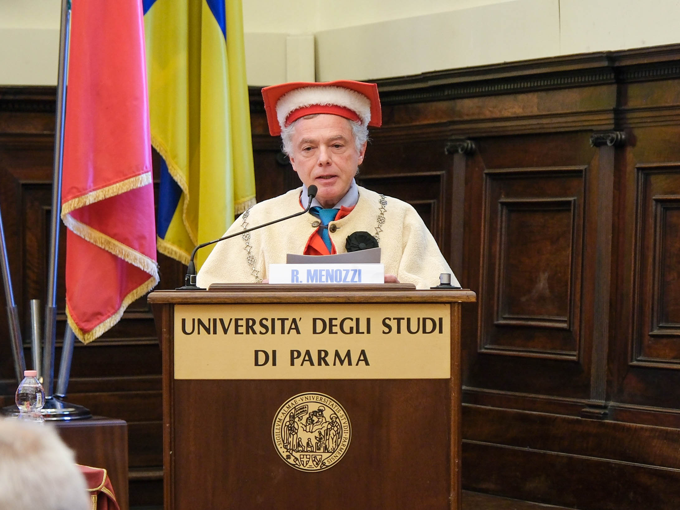 È stato poi Roberto Menozzi, Direttore del Dipartimento di Ingegneria e Architettura, a pronunciare la laudatio per Frede Blaabjerg. «La statura scientifica e l’importanza dei contributi che ha portato al campo dell’elettronica di potenza e della generazione e conversione dell’energia elettrica fanno del prof. Blaabjerg una figura di autorevolezza e prestigio assoluti nella comunità internazionale», ha osservato, aggiungendo più avanti: «È grande merito del prof. Blaabjerg essere stato uno dei visionari che hanno intuito il ruolo chiave che l’elettronica di potenza avrebbe potuto e dovuto giocare nella partita vitale per un uso efficiente, affidabile, pervasivo, accessibile, dell’energia elettrica che letteralmente alimenta la nostra vita. Un campo di turbine eoliche o una solar farm sarebbero esperimenti di poca utilità se non si riuscisse a integrarli in quei sistemi di enorme complessità che sono le reti elettriche continentali».