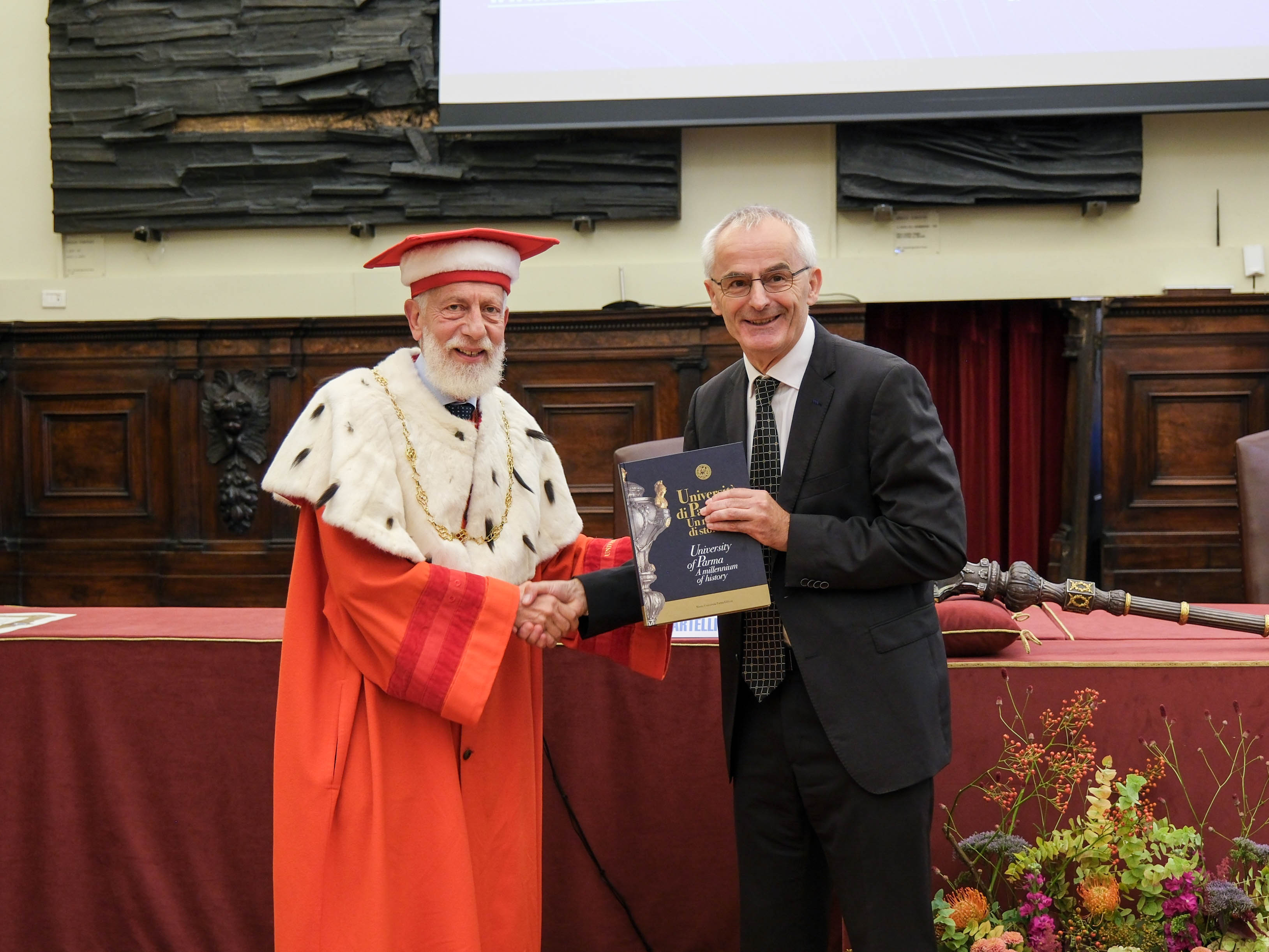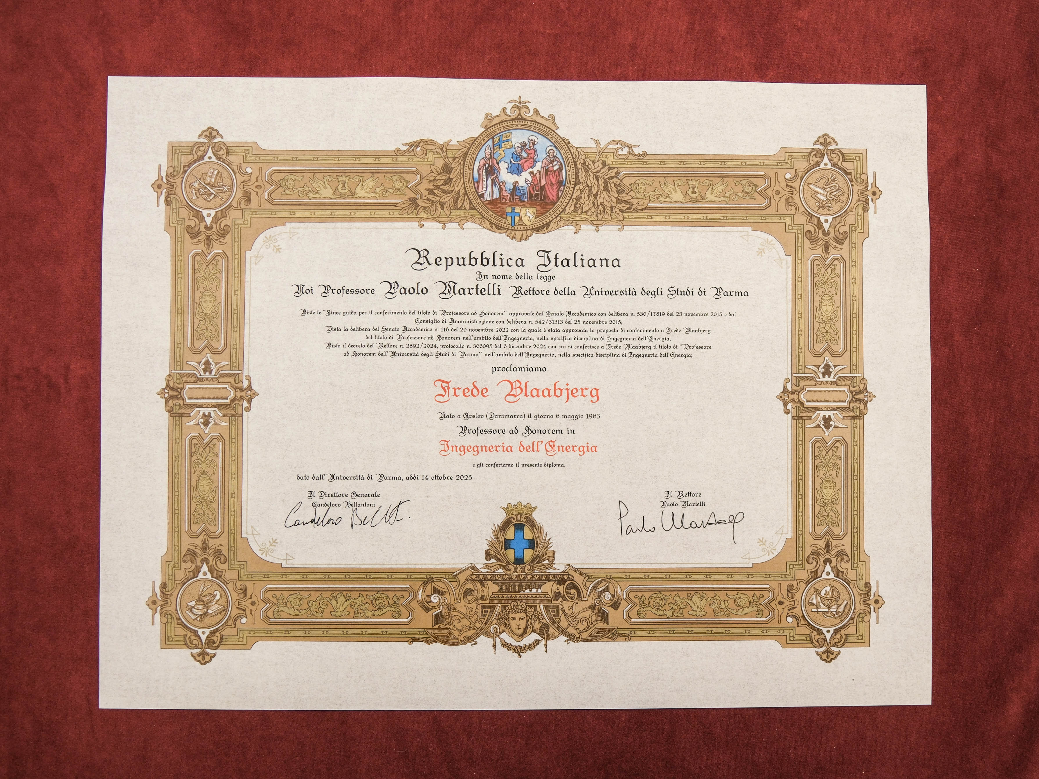 «Sono molto onorato di ricevere questo riconoscimento dall'Università di Parma – ha detto il prof Blaabjerg a margine della sua lectio -. Un riconoscimento molto importante per il mio percorso di ricerca, focalizzato sull'ingegneria elettronica e sulla sostenibilità anche nel campo della mobilità. Collaboro da tanti anni con il vostro Ateneo, in particolare con il Dipartimento di Ingegneria e Architettura, e continuerò a farlo in futuro attraverso attività di ricerca condivise, seminari e progetti di scambio per studentesse e studenti di dottorato».