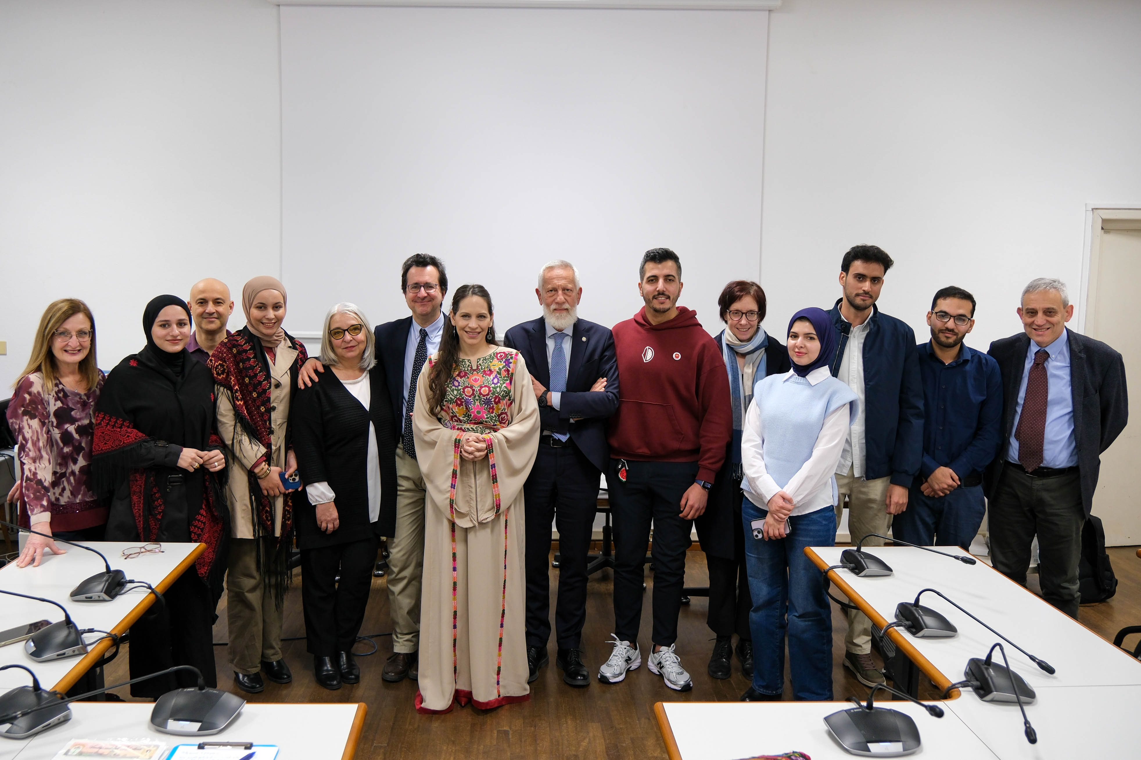 S.E. Mona Abuamara, accolta dal Rettore Paolo Martelli, ha incontrato studentesse e studenti arrivati da Gaza nei mesi scorsi attraverso i corridoi universitari, unitamente ai docenti, alle docenti e al personale Unipr che hanno seguito i progetti di accoglienza.