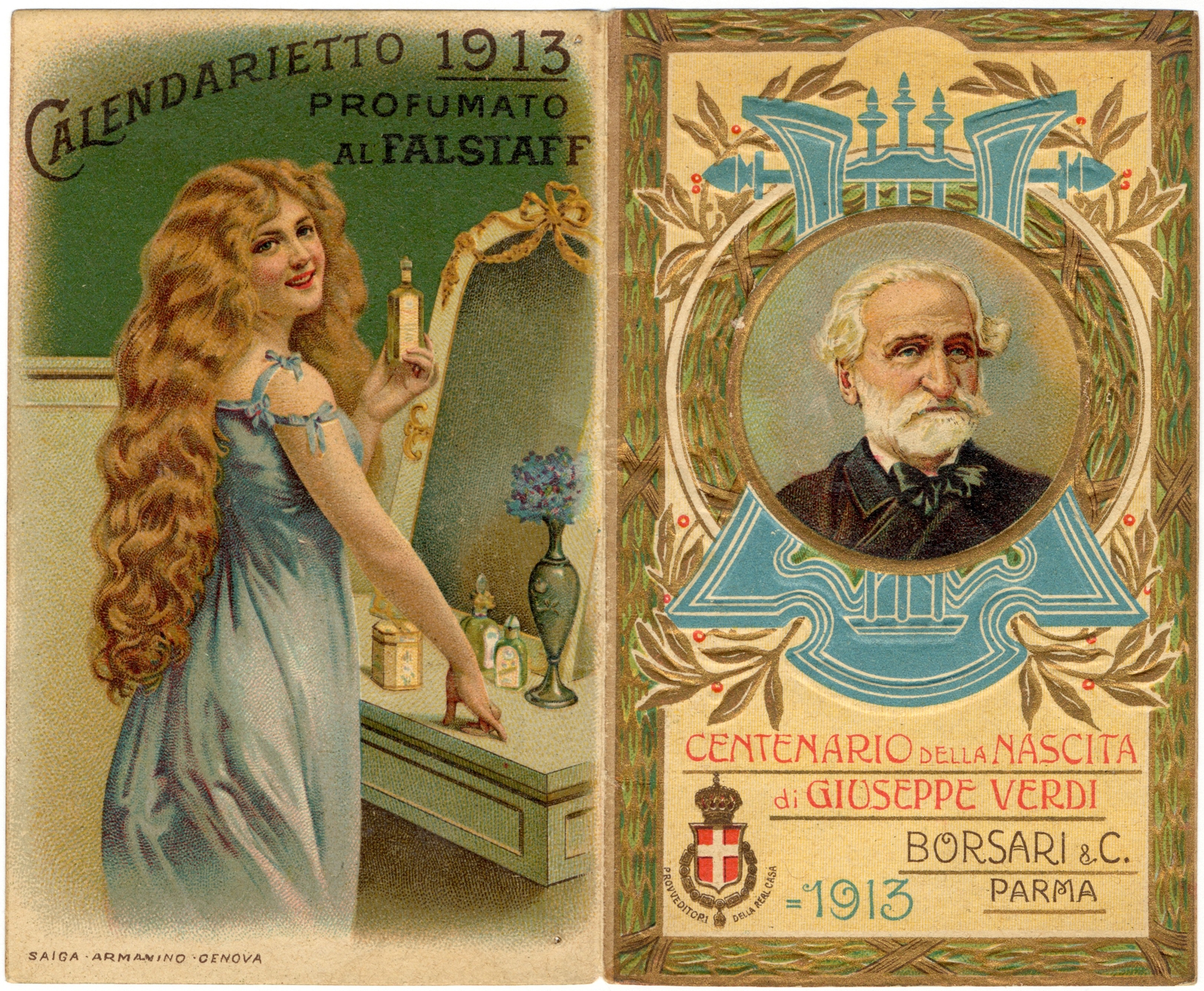 Con la rassegna Verdi in tasca si recupera all’attenzione critica un materiale a torto considerato minore, che ha invece grande rilievo nella diffusione della cultura d’immagine nel nostro paese. In mostra sono esposti cartoline illustrate, calendari profumati, figurine Liebig, periodici illustrati: documenti e fonti di grande interesse per comprendere la diffusione del mito Verdi e ricostruire la storia della sua memoria iconografica come si è andata delineando dagli ultimi decenni dell’Ottocento a metà Novecento, fino ai giorni nostri. Il materiale in mostra copre infatti un lungo periodo, in particolare sono numerose le cartoline prodotte nel 1901, anno della morte del musicista, e nel 1913 in occasione del centenario della nascita. È la storia di un racconto iconografico che cambia insieme alle trasformazioni avvenute nel sistema dell’immagine moltiplicata.