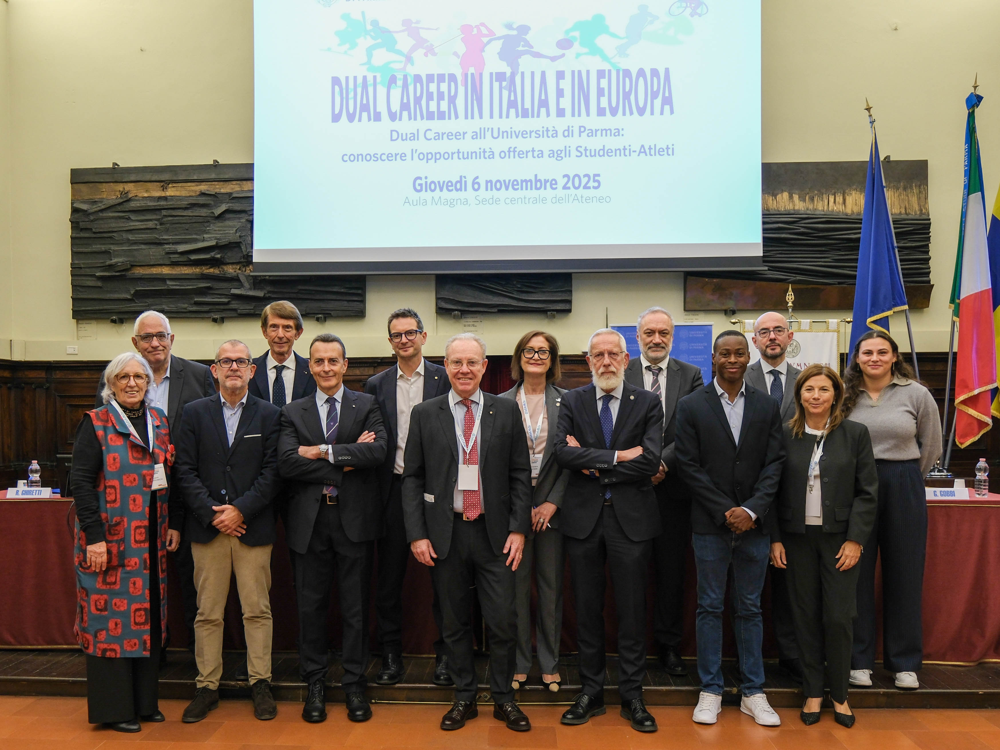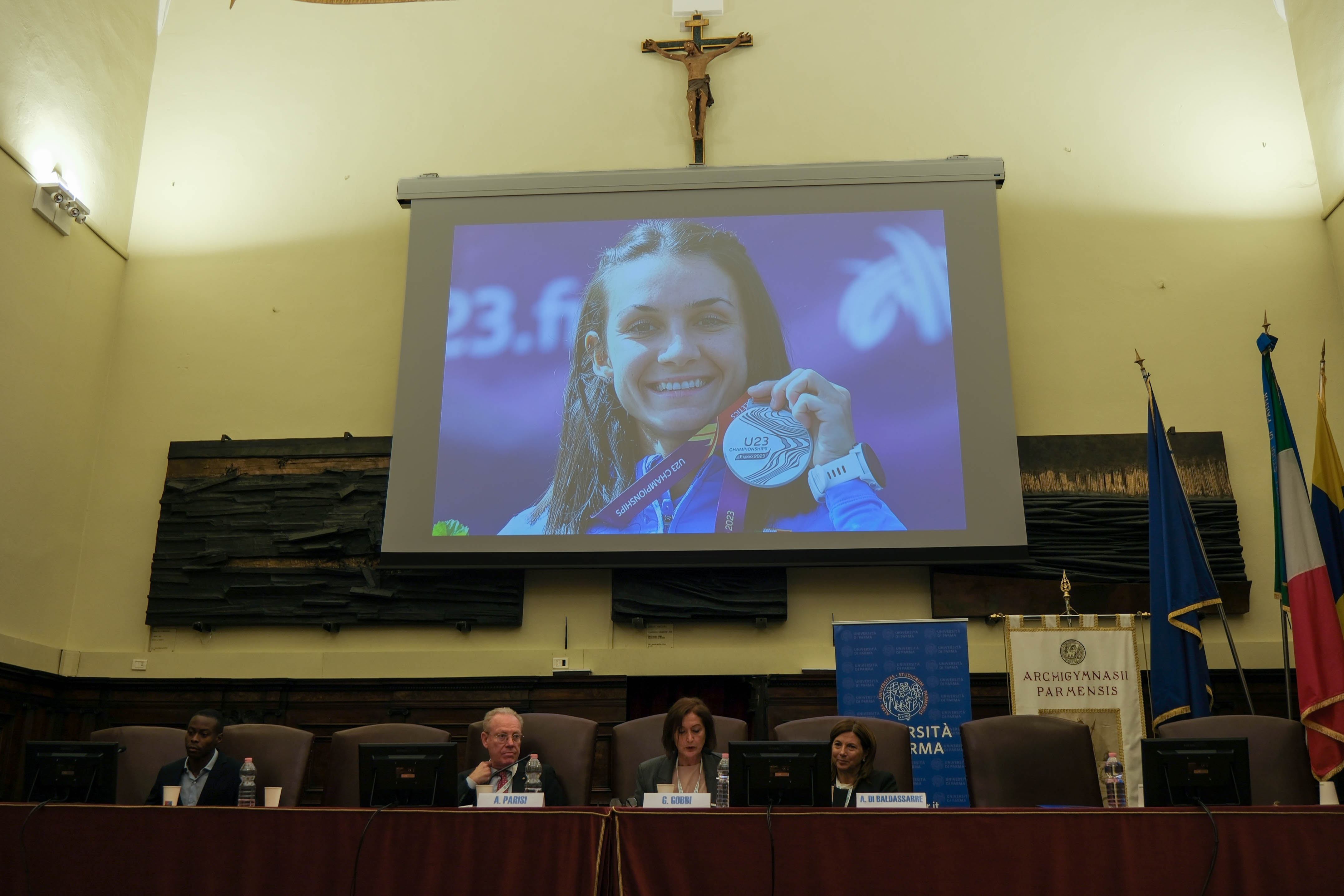 A seguire, nell’ambito del Progetto FAPE (Fondi di Ateneo per il Public Engagement), l’incontro Dual career in Italia e in Europa, moderato dal Presidente SISMeS Attilio Parisi, dalla Past President Angela Di Baldassarre e dalla Delegata del Rettore allo Sport Giuliana Gobbi. Nel corso dell’appuntamento, pensato per sensibilizzare sia il mondo universitario sia quello educativo e sportivo al diritto allo studio di atlete e atleti di alto profilo, sono intervenuti la Consigliera della Ministra dell'Università e della Ricerca Andrea Catizone, che ha inquadrato la Dual Career come strumento di pari opportunità, diversità e inclusione, la Presidente di EAS - European Student as Athlete Laura Capranica, che ha evidenziato i principali aspetti che caratterizzano la Dual Career nei diversi Paesi europei, il Presidente di UniSport Germano Guerra, che ha illustrato il ruolo di UNISPORT nel sostegno alla Dual Career, la Delegata per lo Sport dell’Università di Parma Giuliana Gobbi, che ha portato l’esempio di Unipr. In chiusura la testimonianza del velocista Eseosa Fostine (Fausto) Desalu, campione olimpico nella staffetta 4x100 a Tokyo 2020 e studente-atleta Dual Career dell’Università di Parma.