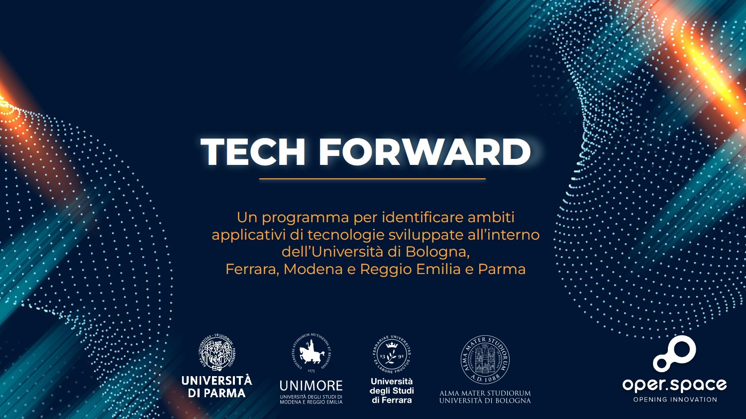 Tech Forward coinvolge le Università di Bologna, Ferrara, Modena e Reggio Emilia e Parma e ha l’obiettivo di aiutare studentesse e studenti, ricercatori e ricercatrici a individuare nuovi ambiti applicativi per tecnologie innovative sviluppate dai gruppi di ricerca universitari, con un approccio orientato all’impatto e al mercato.