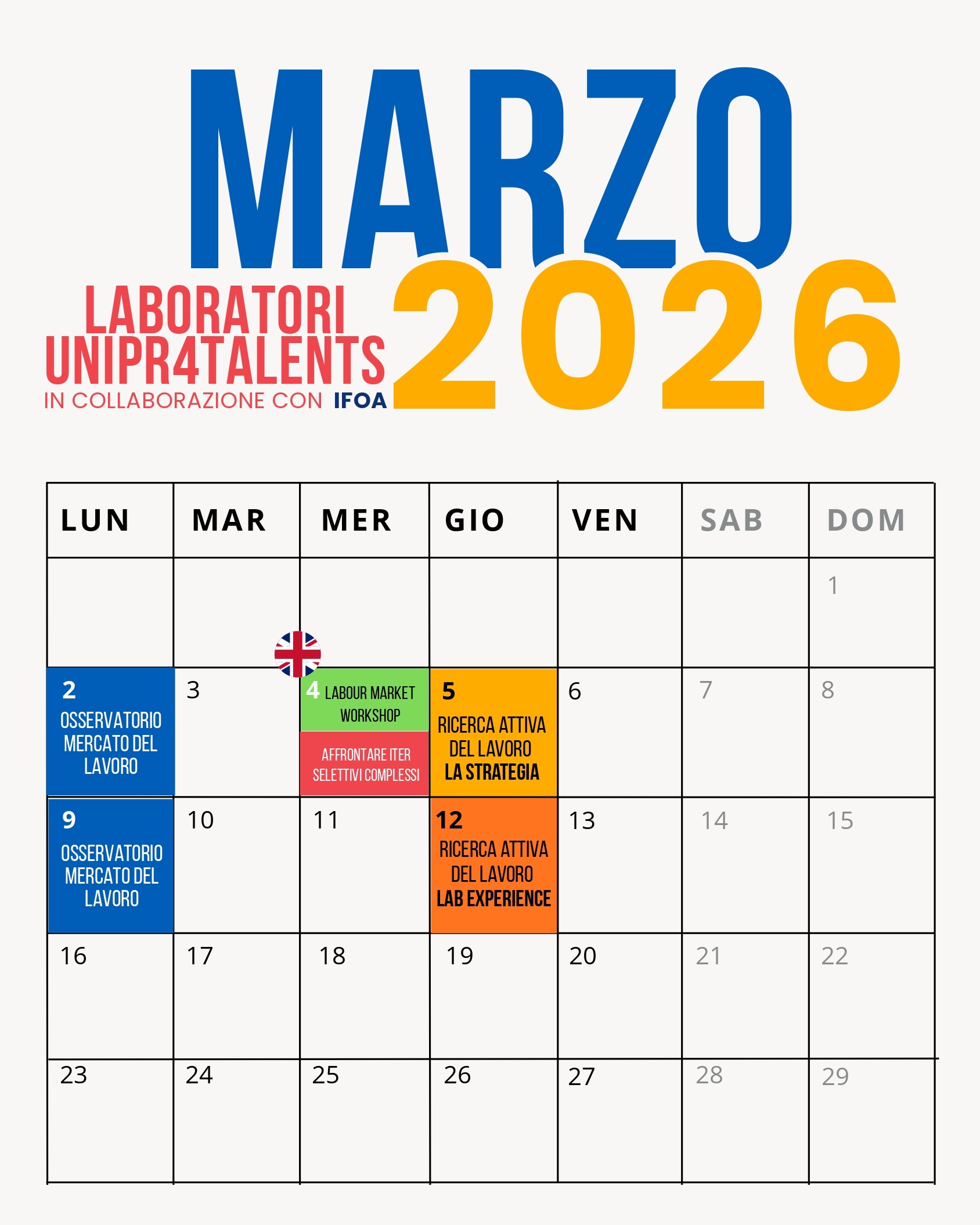 [Ultimo aggiornamento 19 febbraio 2026] Parma, 28 gennaio 2026 - Da febbraio ripartono i laboratori di orientamento al lavoro Unipr4Talents, in collaborazione con IFOA: un supporto mirato per trasformare il proprio obiettivo professionale in un piano concreto con un percorso pratico e guidato.