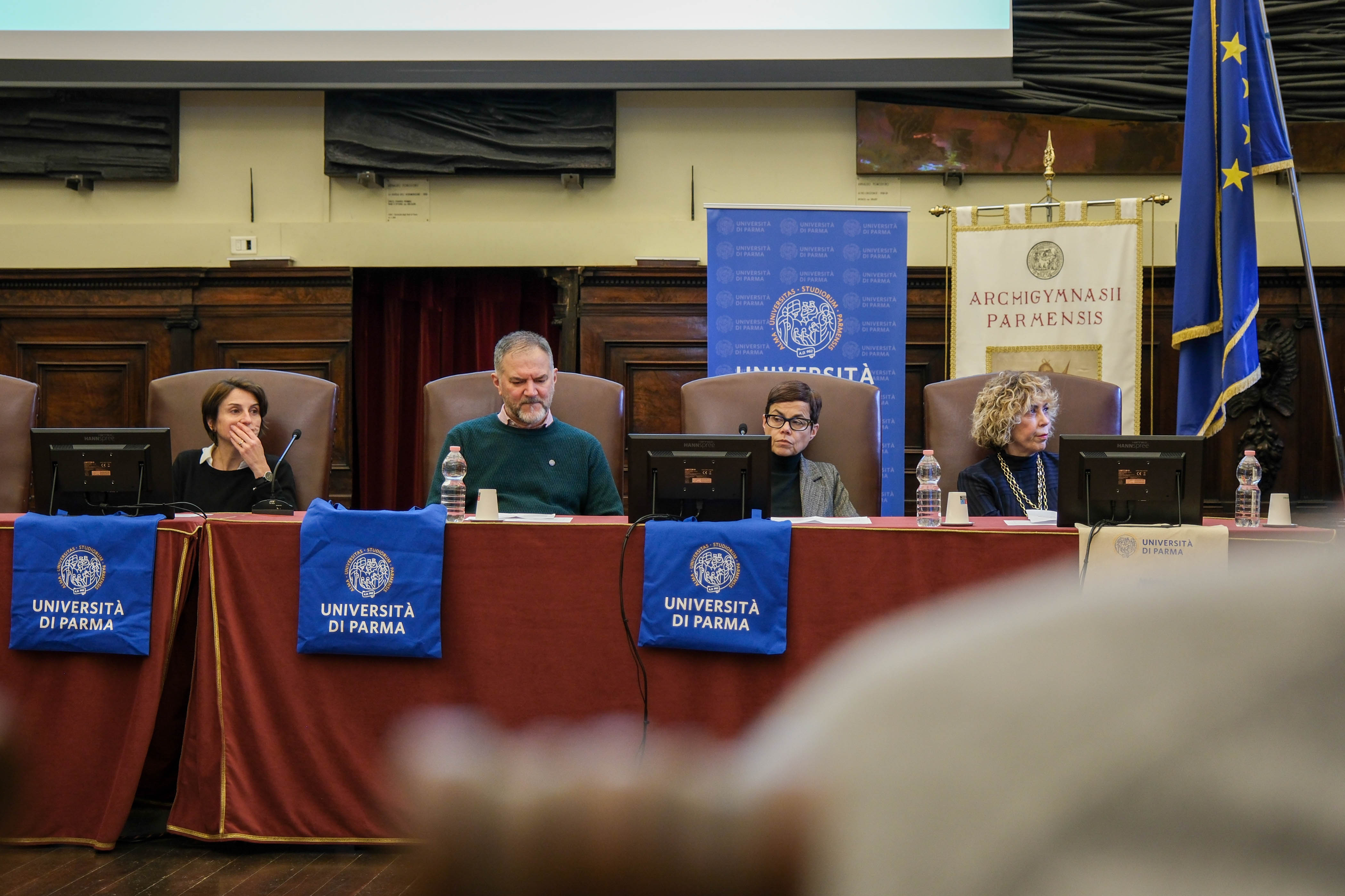 La giornata si è aperta con la tradizionale foto di gruppo nella Corte dell’Università, dove studentesse e studenti hanno incontrato il Rettore Paolo Martelli e l’Assessora alla Comunità Giovanile del Comune di Parma Beatrice Aimi.